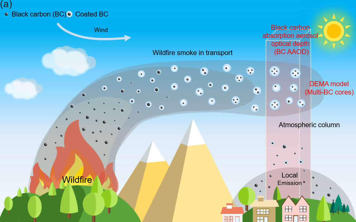 在過往全球氣候模擬中,黑碳(BC)粒子一般被簡化作「核心-殼層」結構﹕即每個粒子只計算一個單一碳核心。然而,由中國內地、香港、美國、英國、以色列、日本和韓國的學者組成的跨學科國際研究團隊發現,在覆蓋範圍廣、煙霧傳輸距離遠的野火中,約五分之一(21%)的黑碳粒子,特別是直徑大於400納米者,其實包含兩個或以上的碳核心。但現時這些「多核心」黑碳氣溶膠粒子,並沒有被納入全球氣候模型當中,這或正是導致黑碳光吸收量長期被低估約50%的關鍵原因。