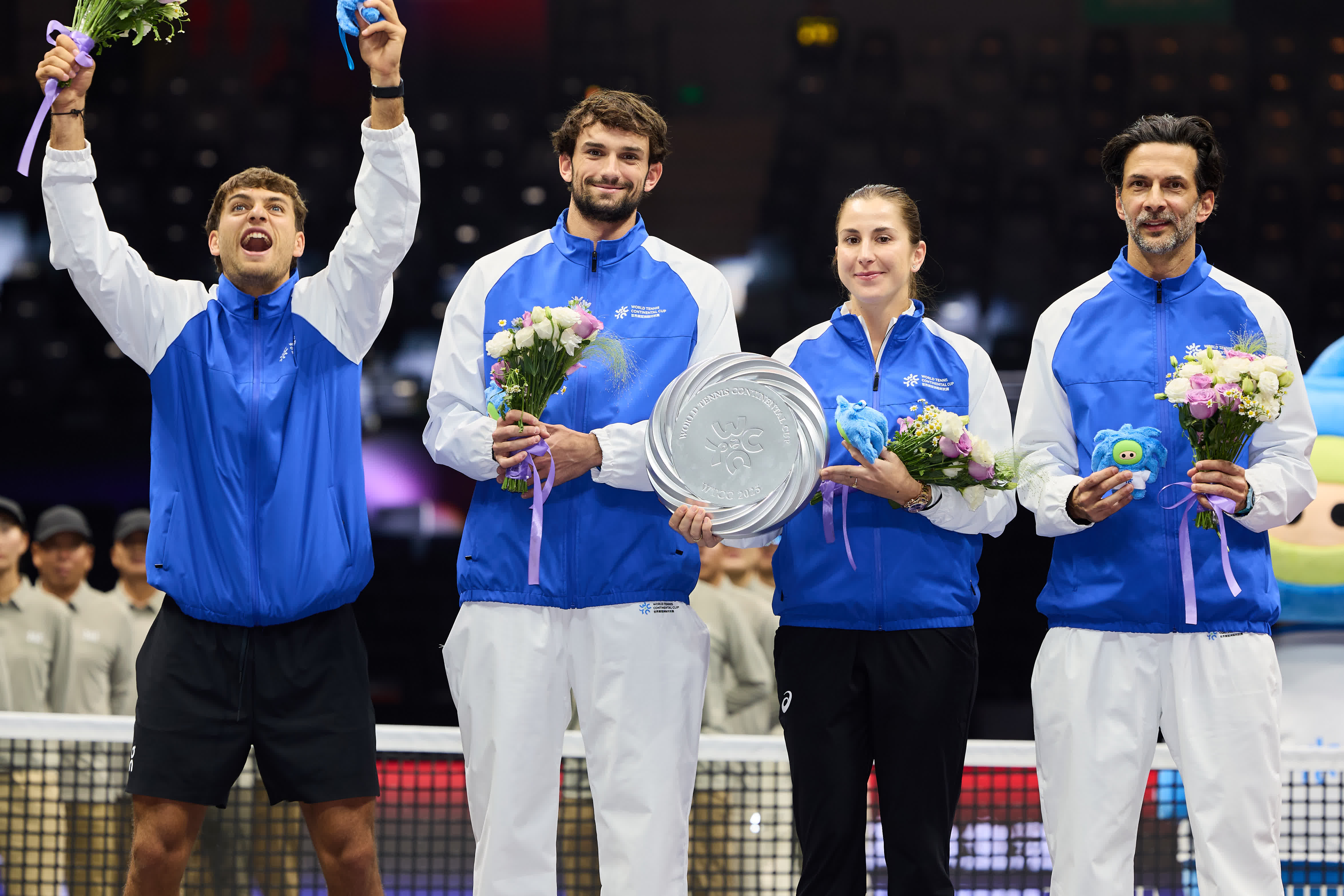 12月28日,2025世界網球洲際對抗賽(WTCC)迎來收官日的較量,最終由中國本土球員王欣瑜、張之臻,與網壇頂尖球星萊巴金娜、盧布列夫組成的世界隊以總比分15-7戰勝由斯瓦泰克、本西奇、科博利和瓦舍羅組成的歐洲隊,奪得首屆賽事冠軍。在賽後發布會上,冠軍成員分享了他們的喜悅、感悟以及對這場非凡團隊旅程的回顧。