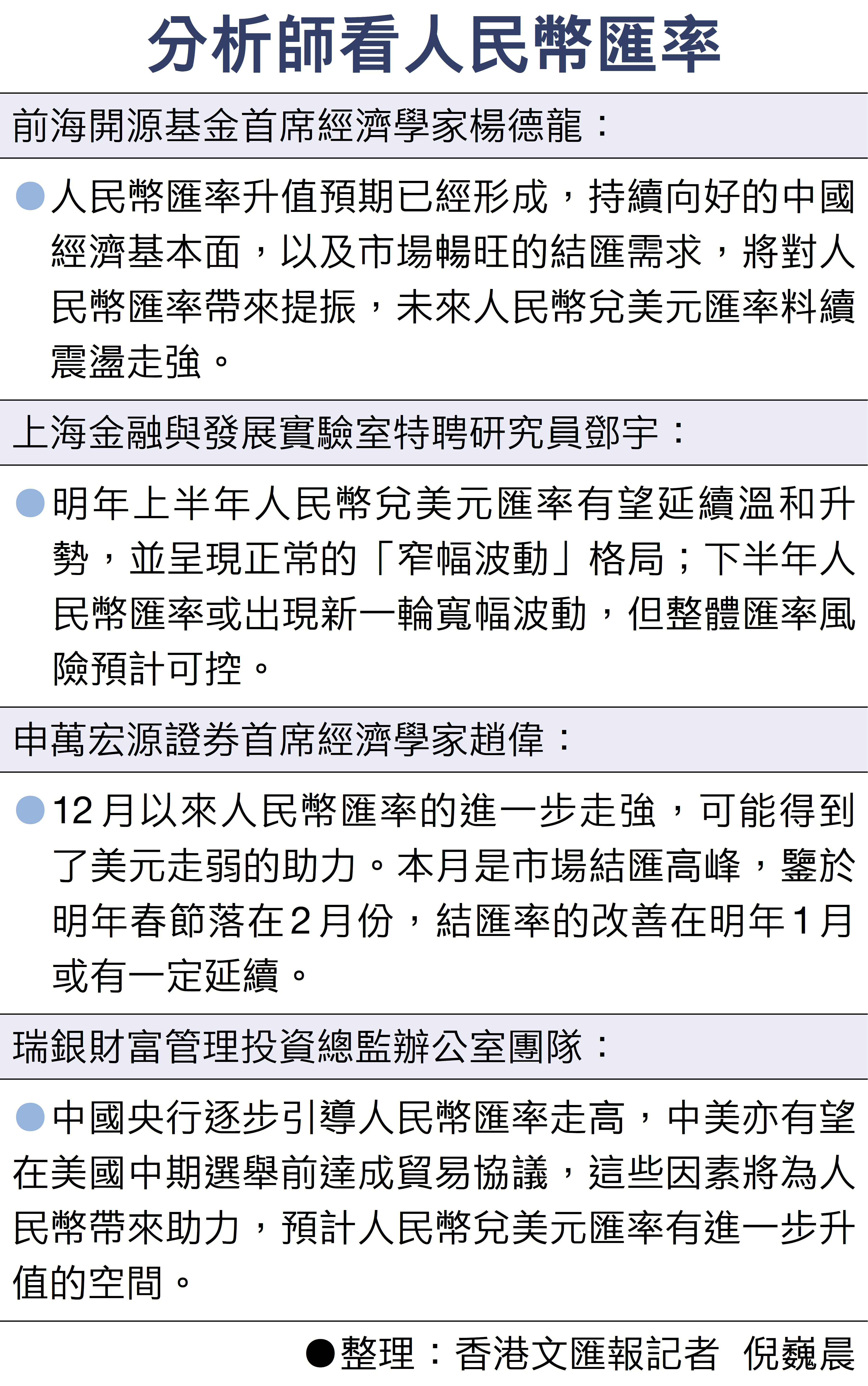 鄧宇預計,明年上半年人民幣匯率將保持溫和升勢,期間可能窄幅波動;下半年中美關稅將面臨再度談判的不確定性,人民幣匯率或出現新一輪寬幅波動,但整體匯率風險預計可控。