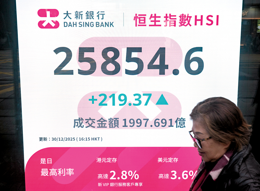 香港文匯報訊 (記者 周紹基) 港股昨日期指結算日,全日反覆升逾200點收市。由於今日(12月31日)除夕只有半日市,故昨日收市後已大致得出恒指全年累升29%的成績表,有望延續2024年升勢。恒指昨升219點,最終收報25,854點,科指則升1.7%報5,578點,大市成交額縮至1,999億元。北水連續3日淨流出,昨日再淨流出38億元。1月份期指收報25,925點,升257點,高水70點,成交逾8.2萬張。