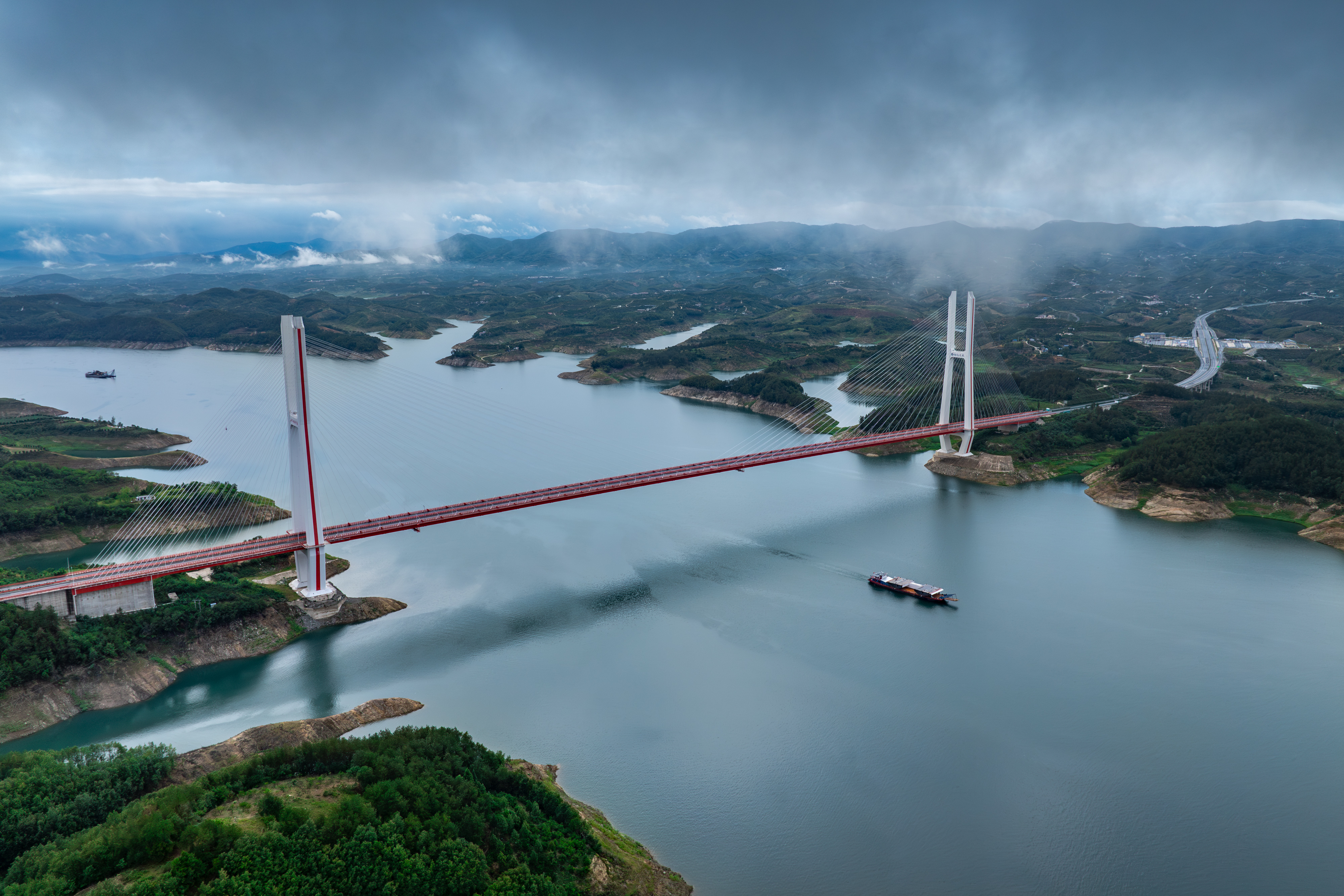 項目關鍵控制性工程丹江小三峽特大橋位於南水北調中線工程水源地——丹江口水庫庫區內,全長919米,主跨536米,是國內跨徑最大的跨峽谷分離式混合梁斜拉橋,也是目前河南省最大跨徑斜拉橋。