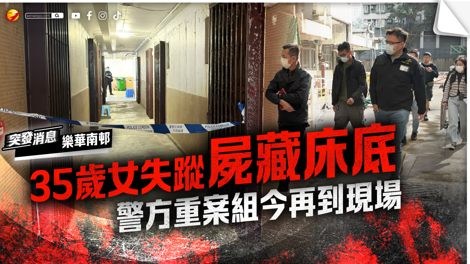 秀茂坪樂華南邨12月30日揭發謀殺案。警方在調查一宗女子失蹤案時,在樂華南邨喜華樓一單位發現35歲失蹤女子死亡,調查相信疑兇為女死者的非華裔男友。消息指,疑兇在案發後已潛逃東南亞國家。今日(31日)早上有重案組探員及政府化驗所人員到場調查。