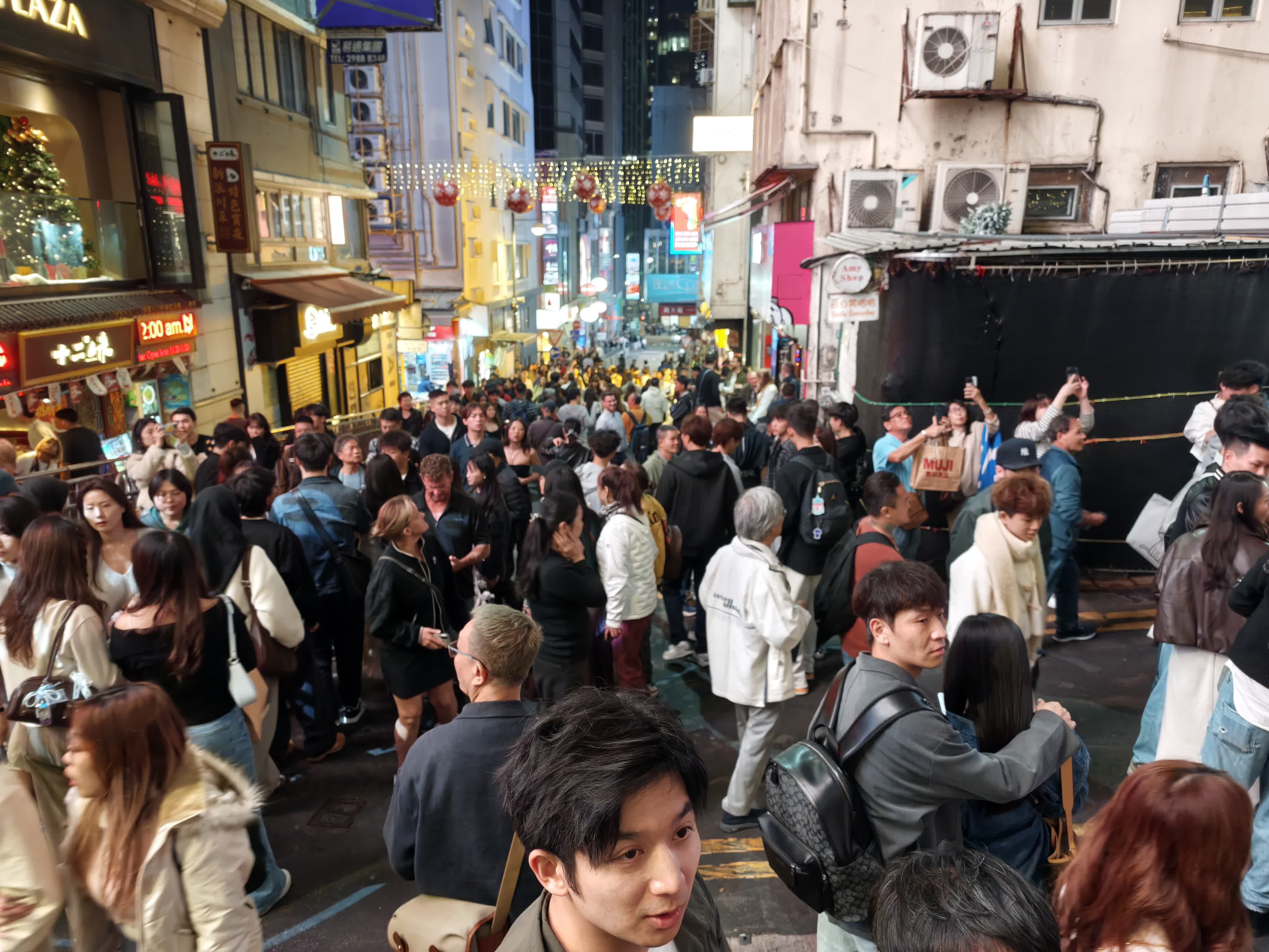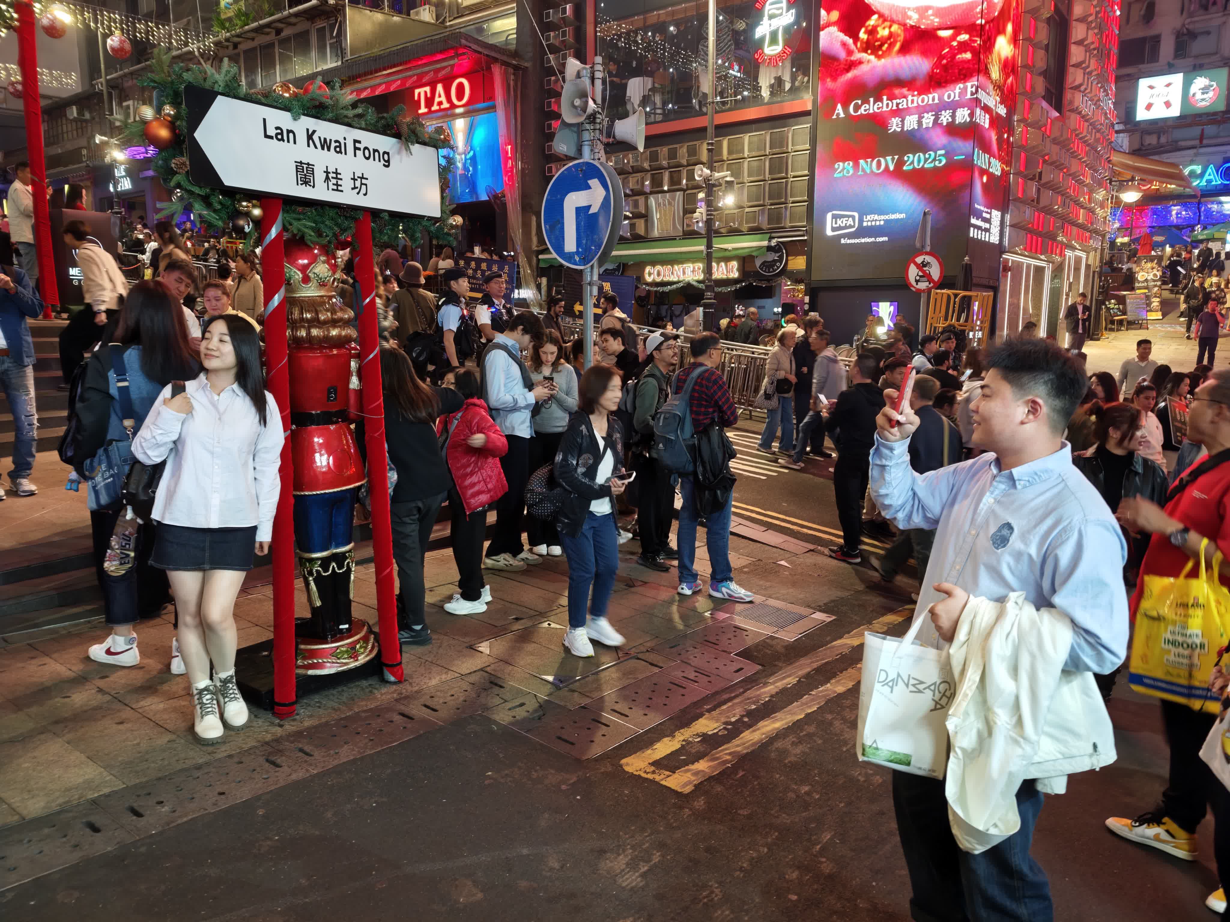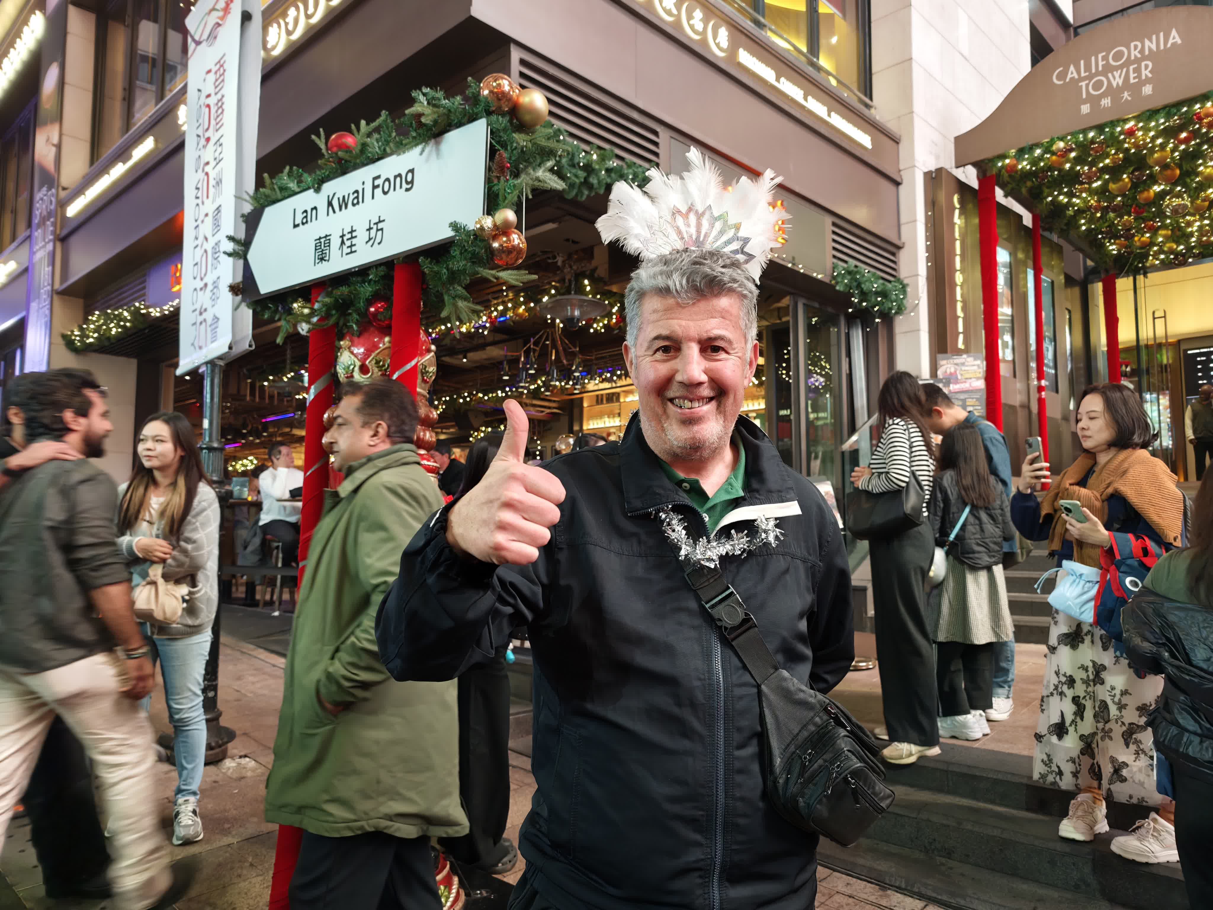 豐富的活動亦吸引了大批遊客。來自斯洛文尼亞的Stanko與家人剛結束在內地的旅程,特地選擇在香港度過2025年的最後一天。剛抵達香港的他在放下行李後直奔蘭桂坊,大讚香港熱鬧且充滿活力,街道節慶氣氛極好,對今晚的跨年表演充滿期待。