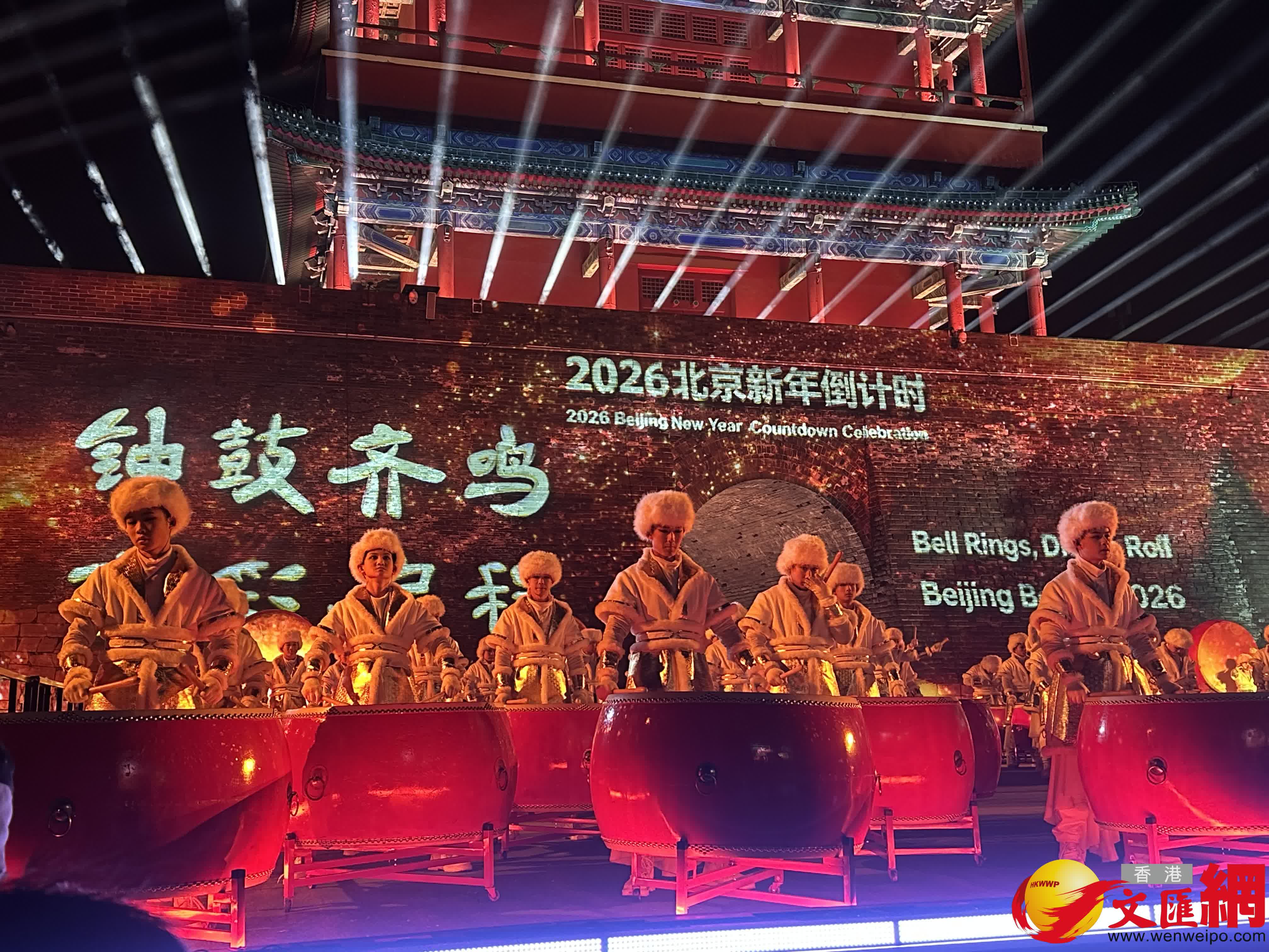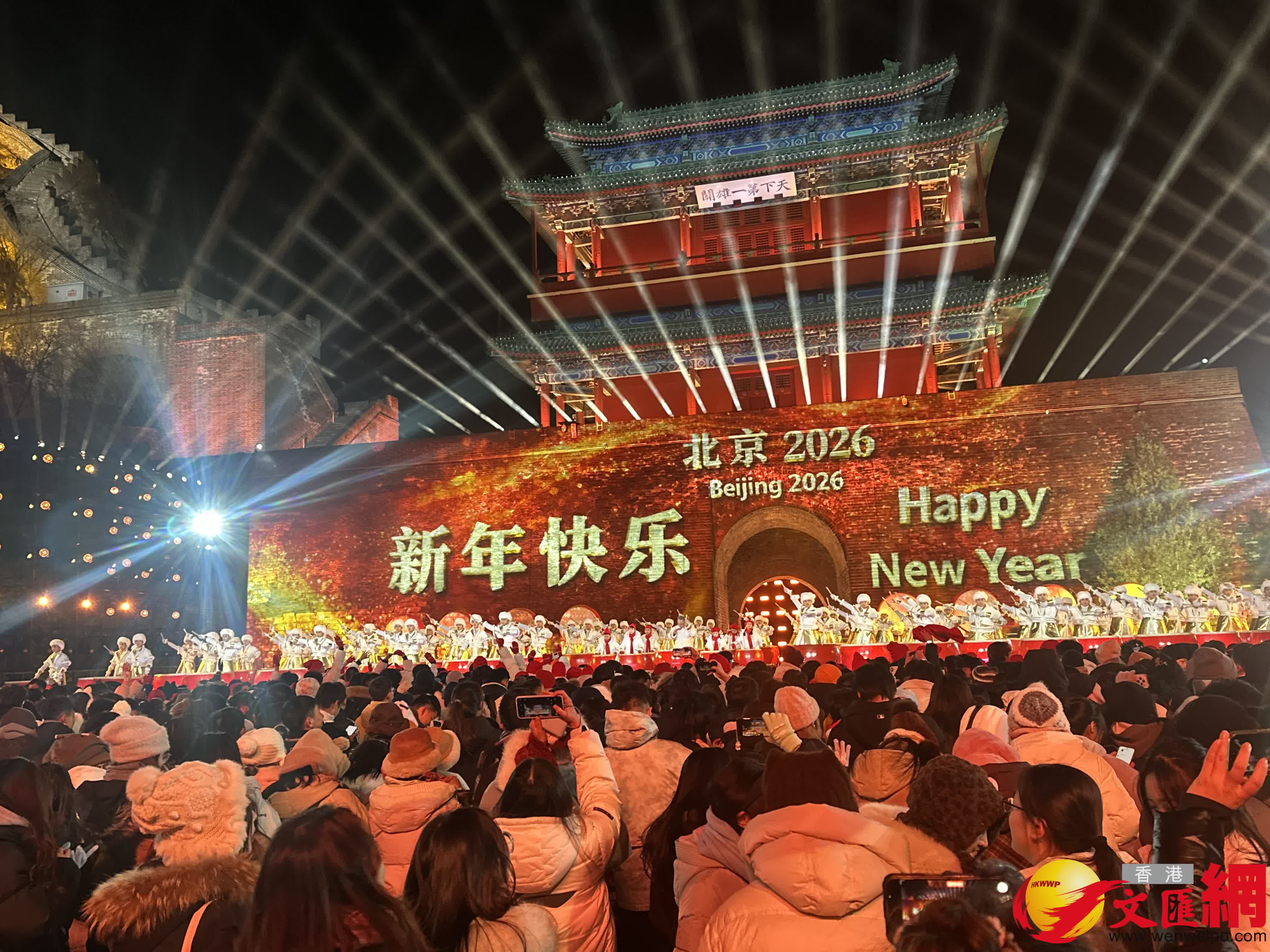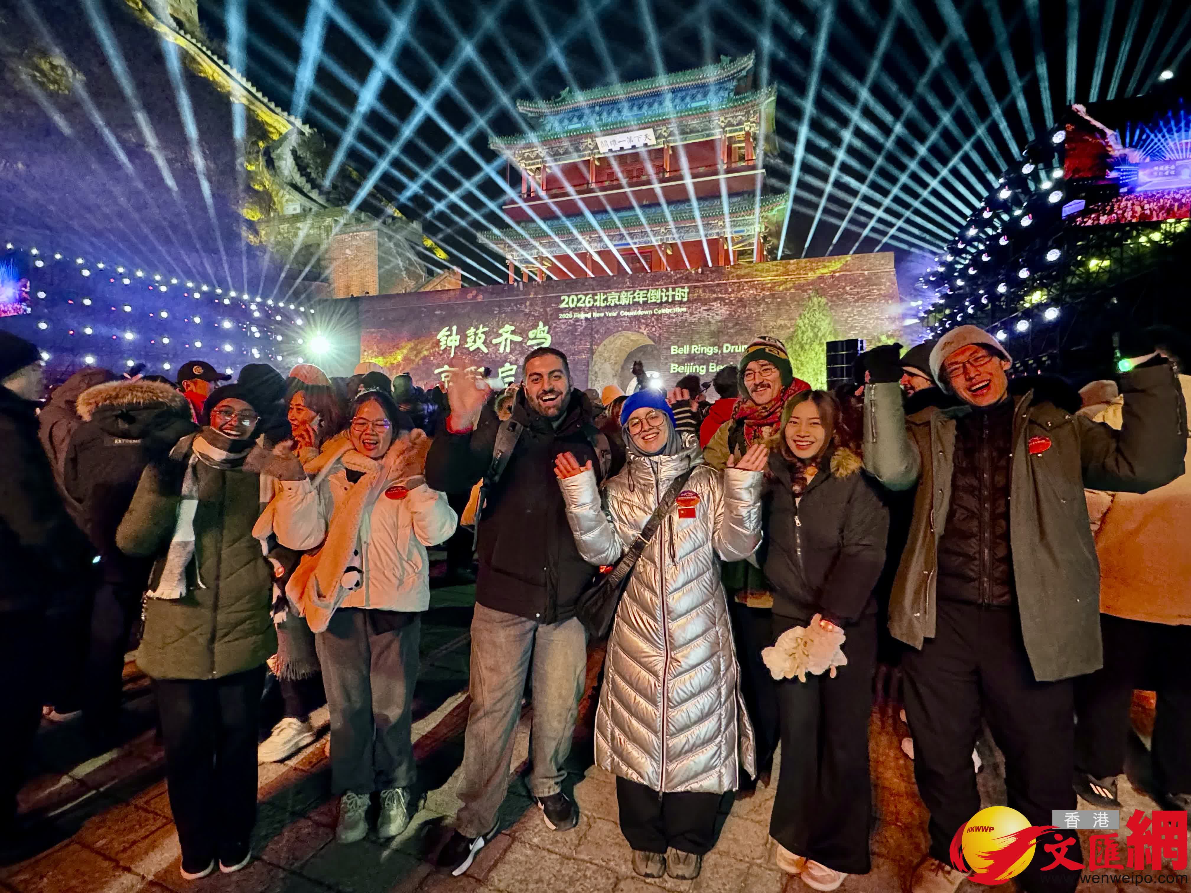 (香港文匯網記者蘇雨潤 北京報道)2025年12月31日晚,萬眾期待中,居庸關長城、大鐘寺古鐘博物館以及7個視頻連線點位同步開啟新年倒計時。「10、9……3、2、1」,2026年在全城歡呼聲中到來。零點時分,一場震撼人心的「鐘鼓齊鳴」將這場迎新活動推向高潮,既勾勒出古都歷史文脈與新時代精神交相輝映的動人圖景,奏響北京奔赴「十五五」新征程的激昂序曲,更點燃了萬千市民對新一年的美好憧憬。