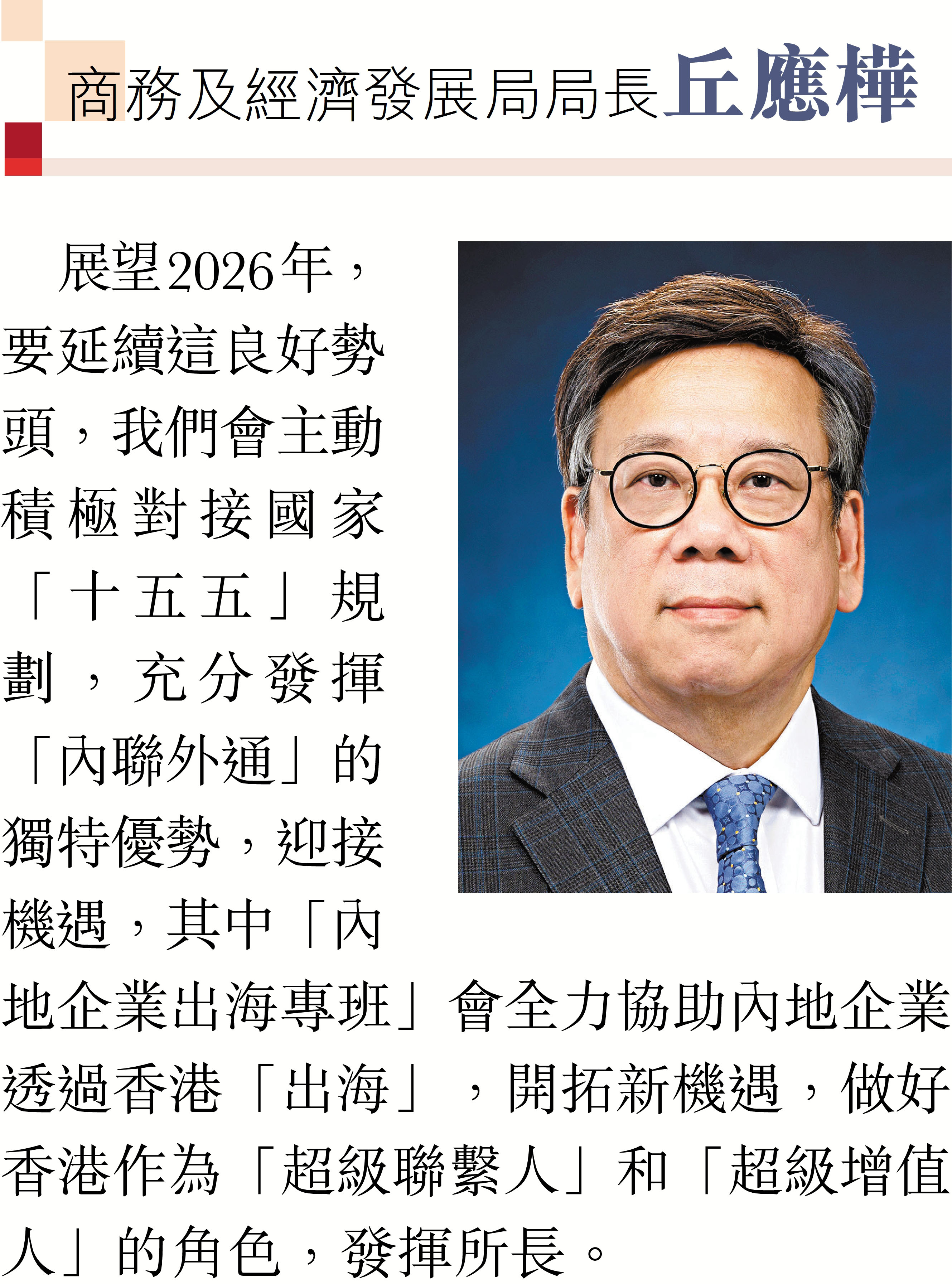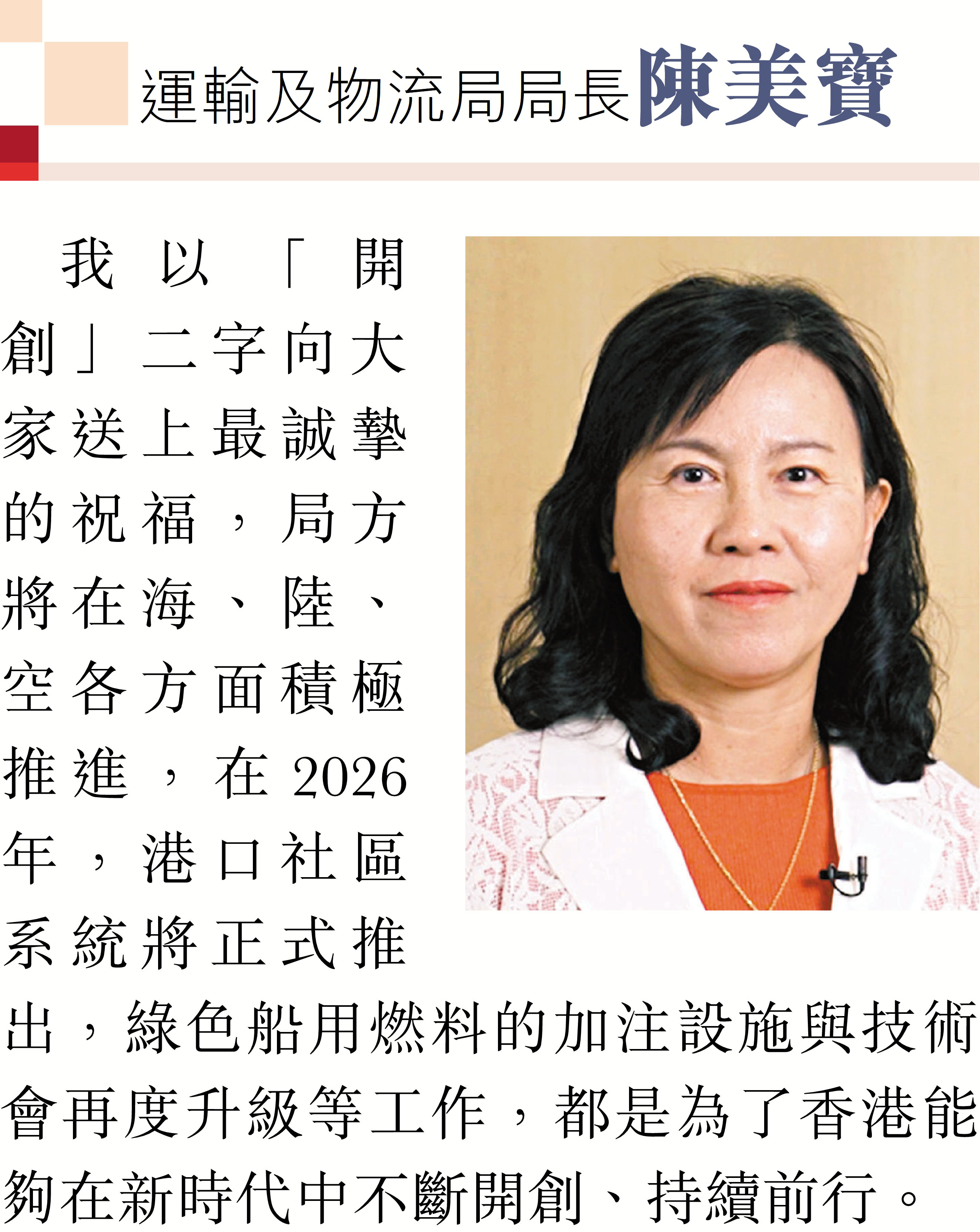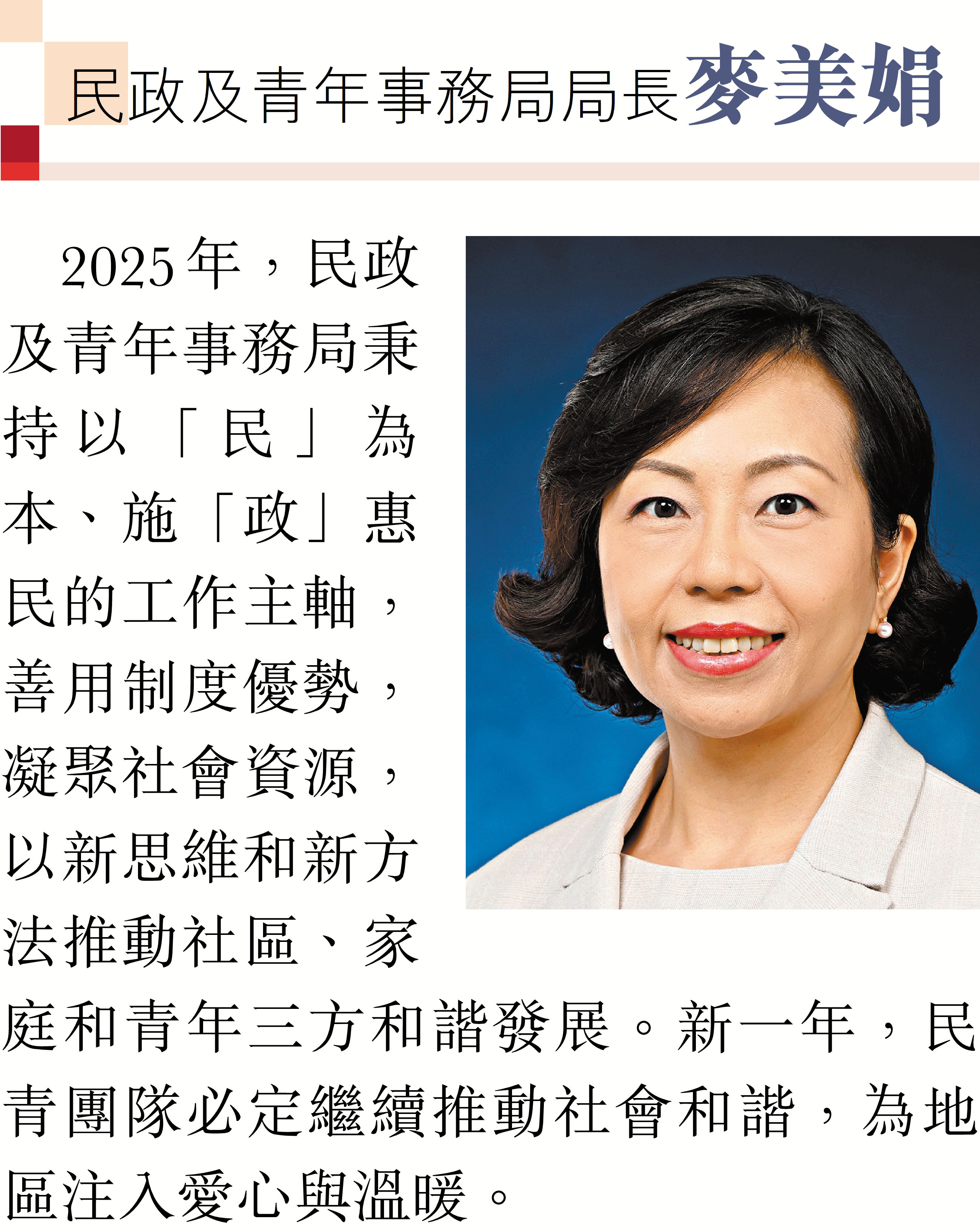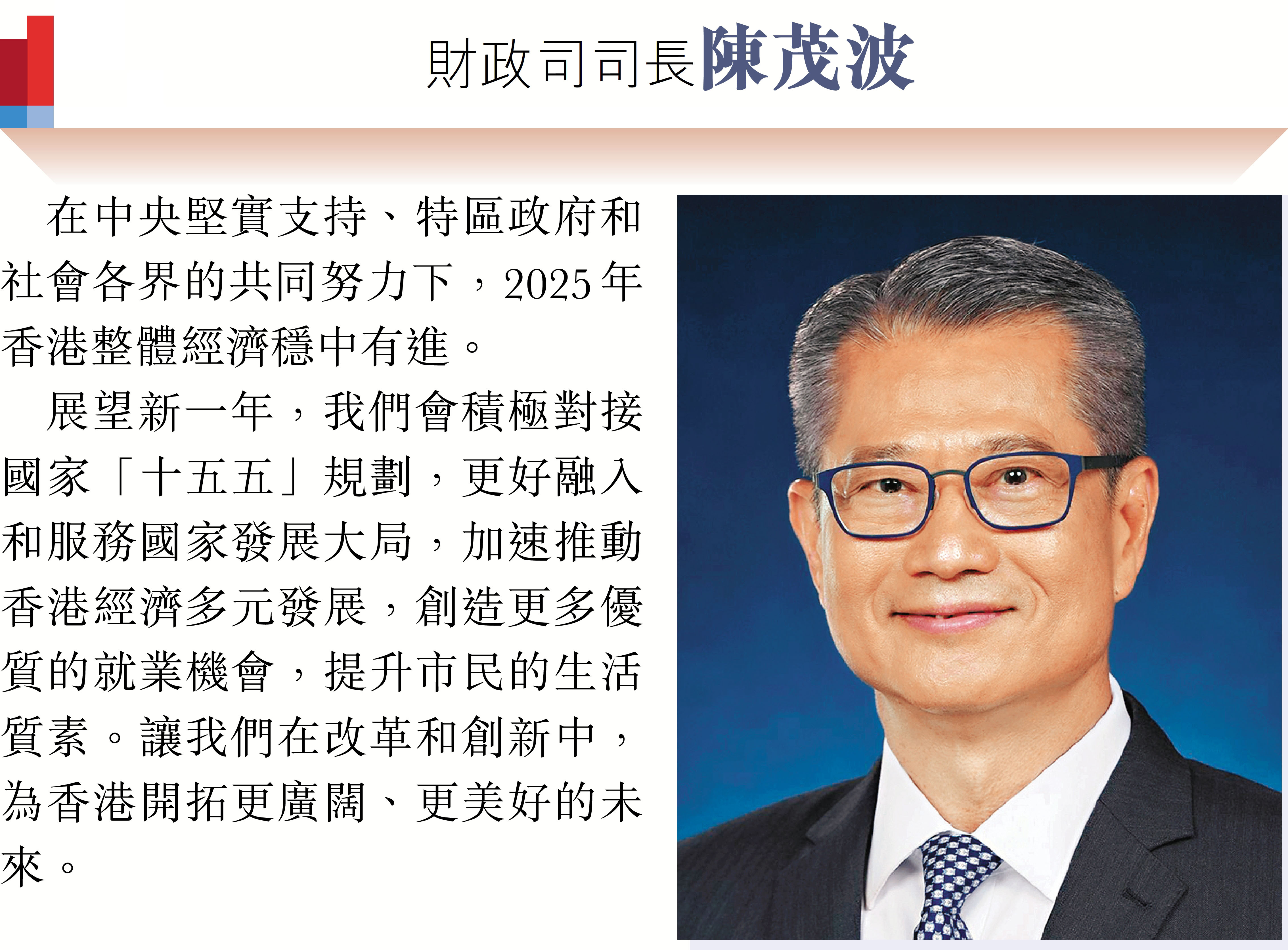 2026年元旦到來之際,香港特區行政長官李家超和特區政府司局長圍繞「同心同行、美好共創、安穩、社福同心、綠色轉型、發揮所長」等關鍵詞,向香港文匯報讀者送上誠摯的新年祝福。