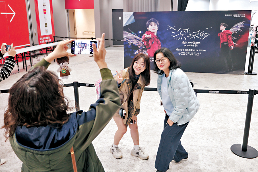 除夕夜香港除有各項倒數活動外,內地超人氣實力歌手周深在啟德體育園舉行跨年演唱會,既吸引大批本地歌迷捧場,更有不少內地旅客特意來港,與偶像一起在歌聲中迎接2026年的來臨。來自各地的粉絲不僅為音樂盛宴奔赴而來,更為香港文旅市場注入強勁活力,餐飲、住宿、交通、應援消費等多領域在粉絲經濟的帶動下同步升溫。有首次來港的內地歌迷計劃留港3天,其間消費預算2萬元。佔地28公頃的啟德體育園今年3月1日開幕至今,已舉辦超過40個體育及娛樂盛事活動,超過90個活動日累計吸引超過700萬人次到訪,而開幕6個月內主場館入場人次突破100萬,當中超過半數為旅客,帶動區內消費。 ●香港文匯報記者 鍾靜雯