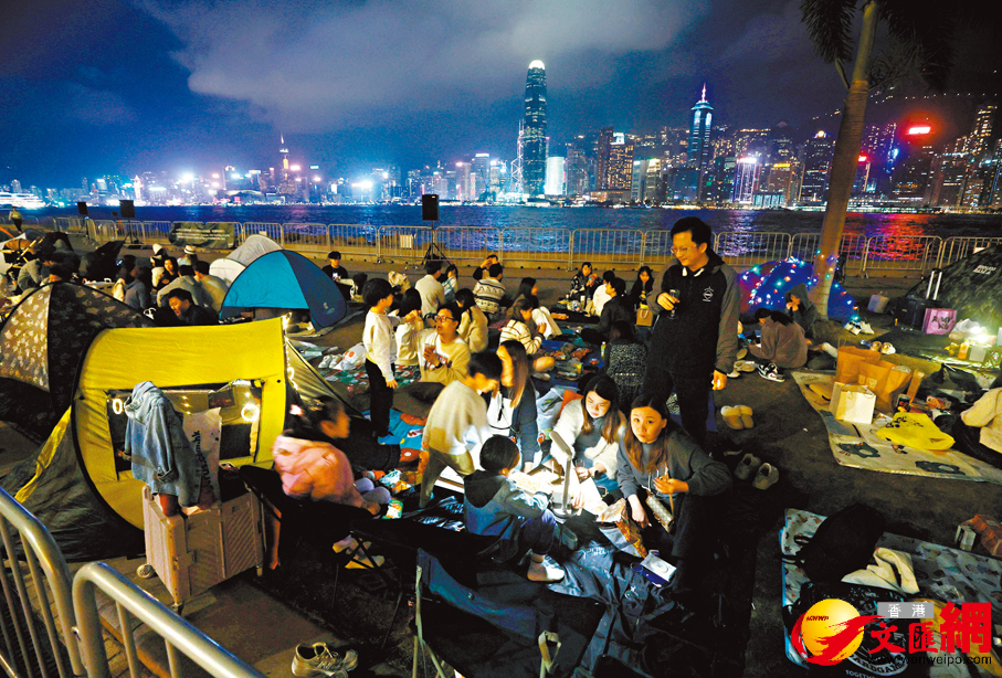 來自西安的H先生則是徒步愛好者,昨午在西九草坪倚靠登山背包休息。他直言:「就是衝着這裏的倒數活動而來,總要出來走一走,想感受一下香港的跨年氣氛。」
