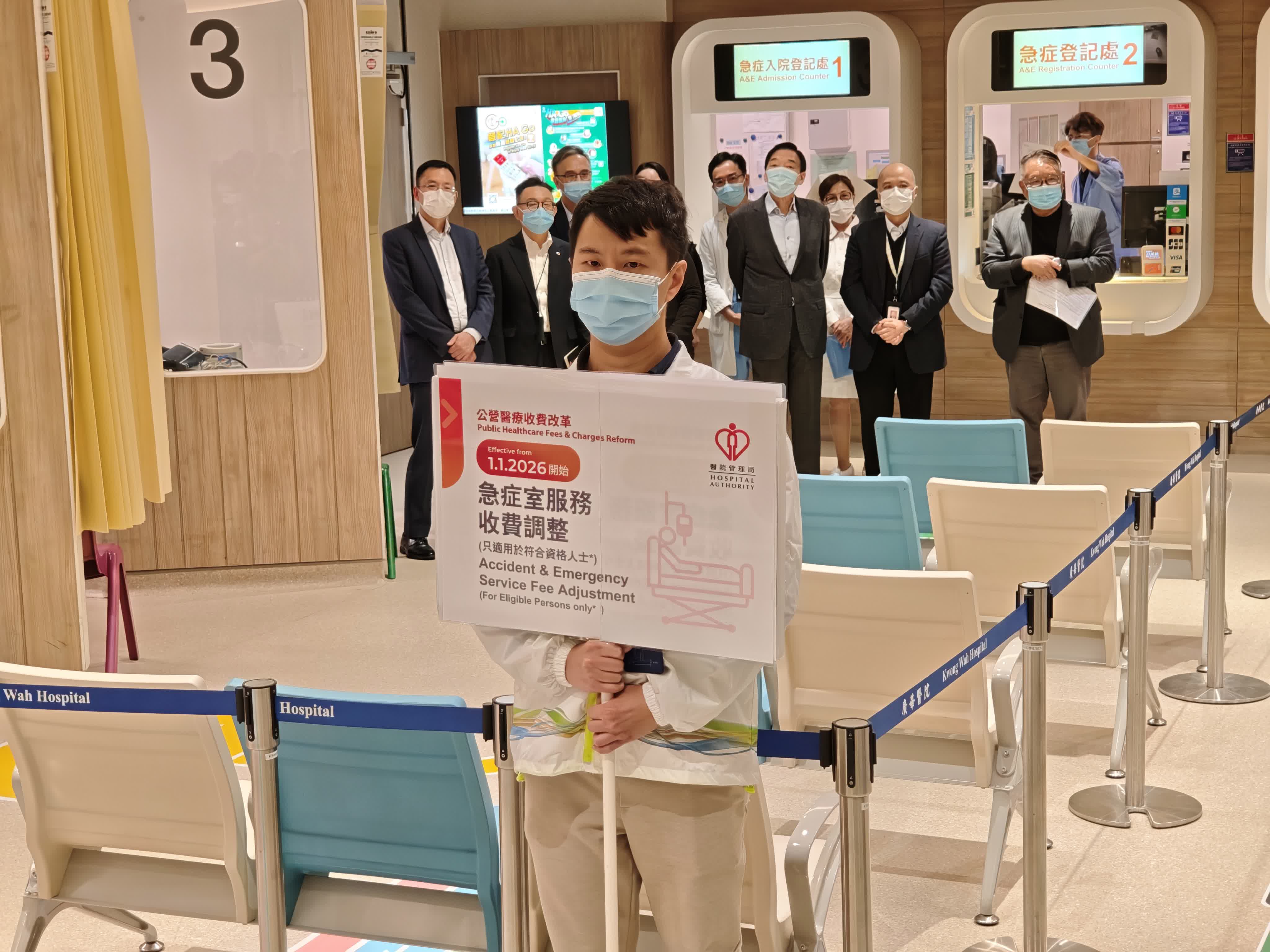 自昨晚11時10分起,廣華醫院內廣播便多次提醒市民有關新收費安排。而在凌晨零時,工作人員於入口舉起「急症室服務收費調整」牌,代表此後所有收費均按新規定執行。其間,廣華醫院行政總監鄧錦成及香港醫院管理局主席范鴻齡亦於現場巡視。