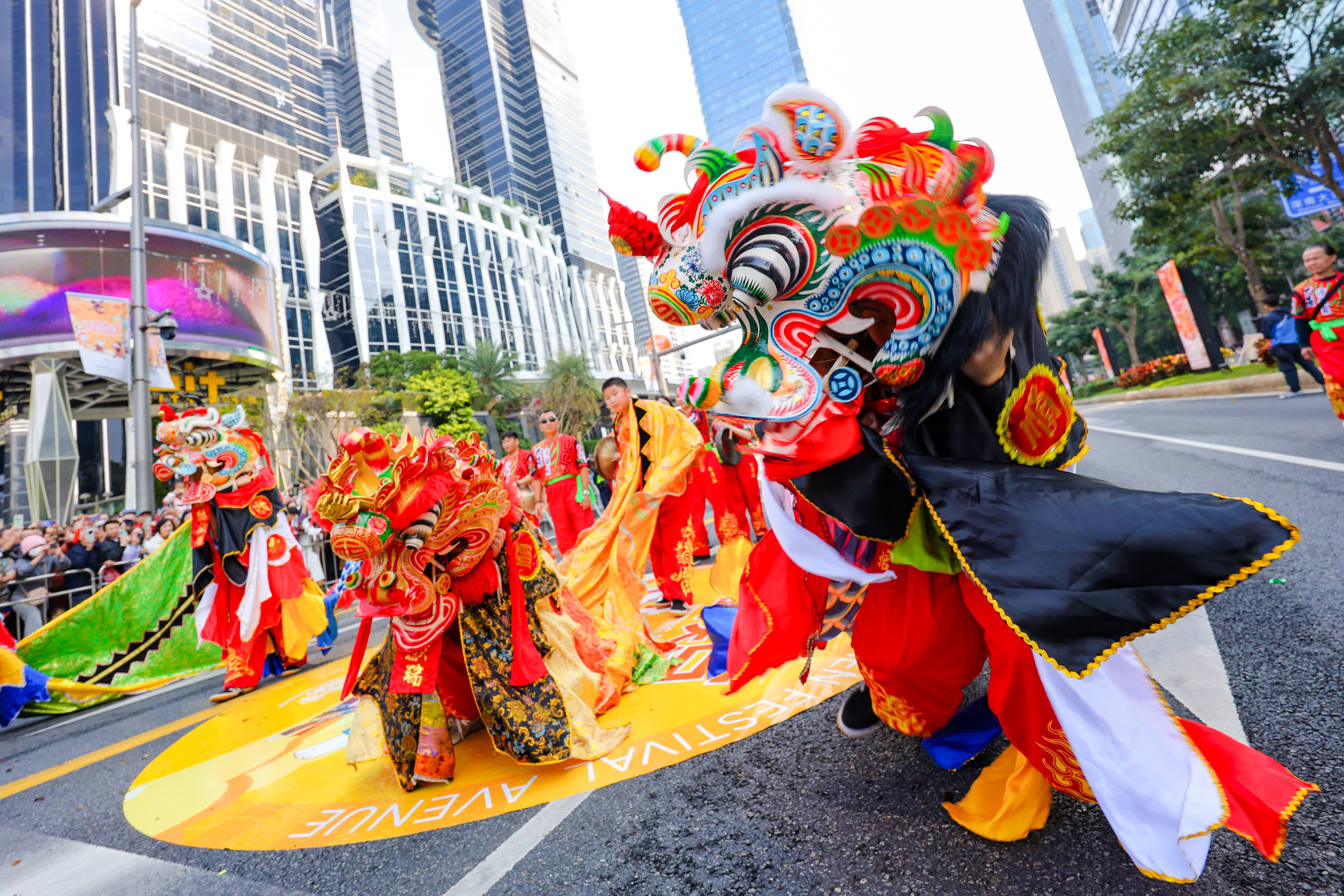 作為深圳市中心區,深圳福田一直有來服務粵港澳大灣區建設國家戰略,主動搭建「四海一家」情感交融的「文化客廳」。巡遊方陣中,香港元朗白眉麒麟靈巧祥瑞,傳遞深港情誼;澳門醉龍舞形醉意不醉,盡顯非遺匠心。值得一提的是,連城新天地演繹的節目中,中國台灣地區傳統民俗「電音三太子」踩着電子節拍破次元而來,萌趣互動引得掌聲如潮。