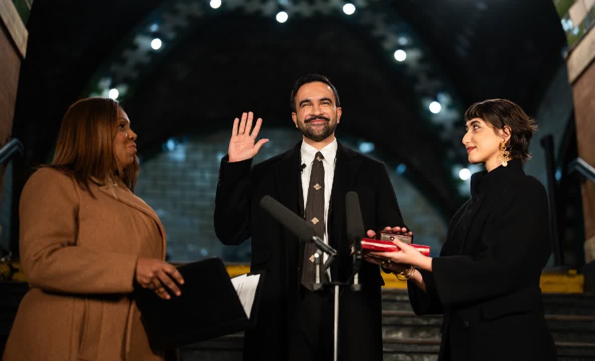 美國紐約市踏入元旦迎來新任市長,被視為民主黨新星的馬姆達尼周四(1月1日)在親友陪同下,於舊紐約市政廳地鐵站舉行私人儀式,宣誓就任成為紐約首名穆斯林市長。儀式由州檢察官詹姆斯主持,馬姆達尼手持《可蘭經》宣誓,他同日稍後在市政廳台階前舉行公開就職典禮,由同為民主黨左翼的國會參議員桑德斯擔任主持人。