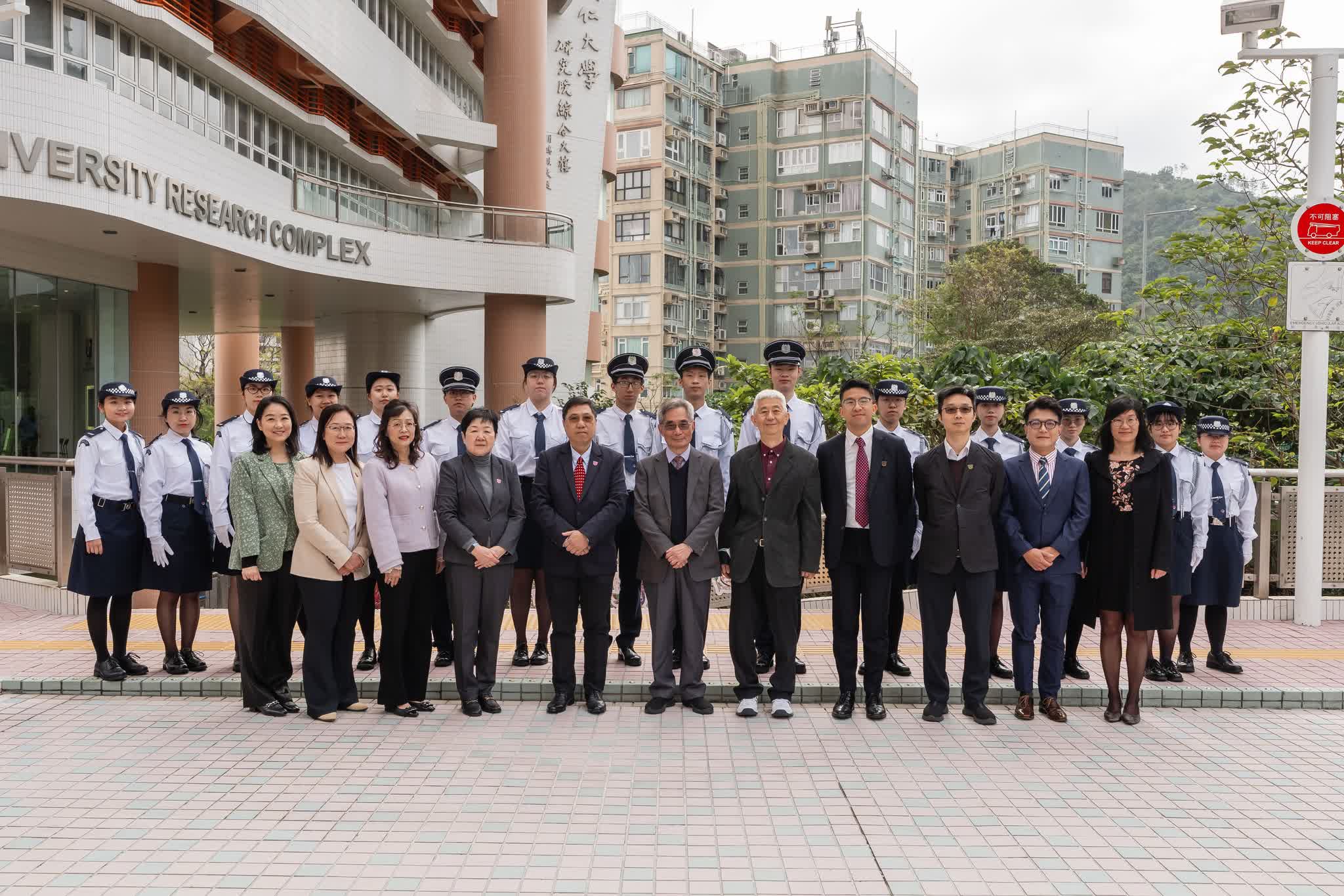 香港樹仁大學今日在校園舉行升旗儀式。主禮嘉賓包括仁大校務委員會主席黃錫楠、校務委員會委員鄔鎮華、署任校長胡懷中、首席副校長孫天倫及各大學管理層成員。