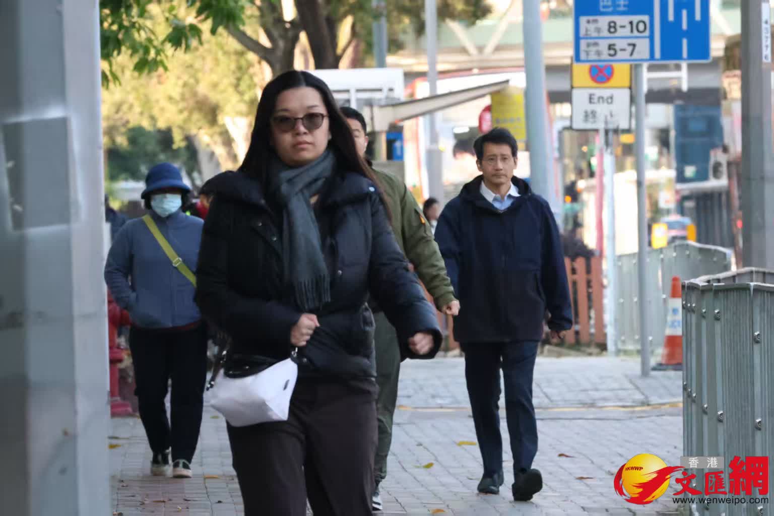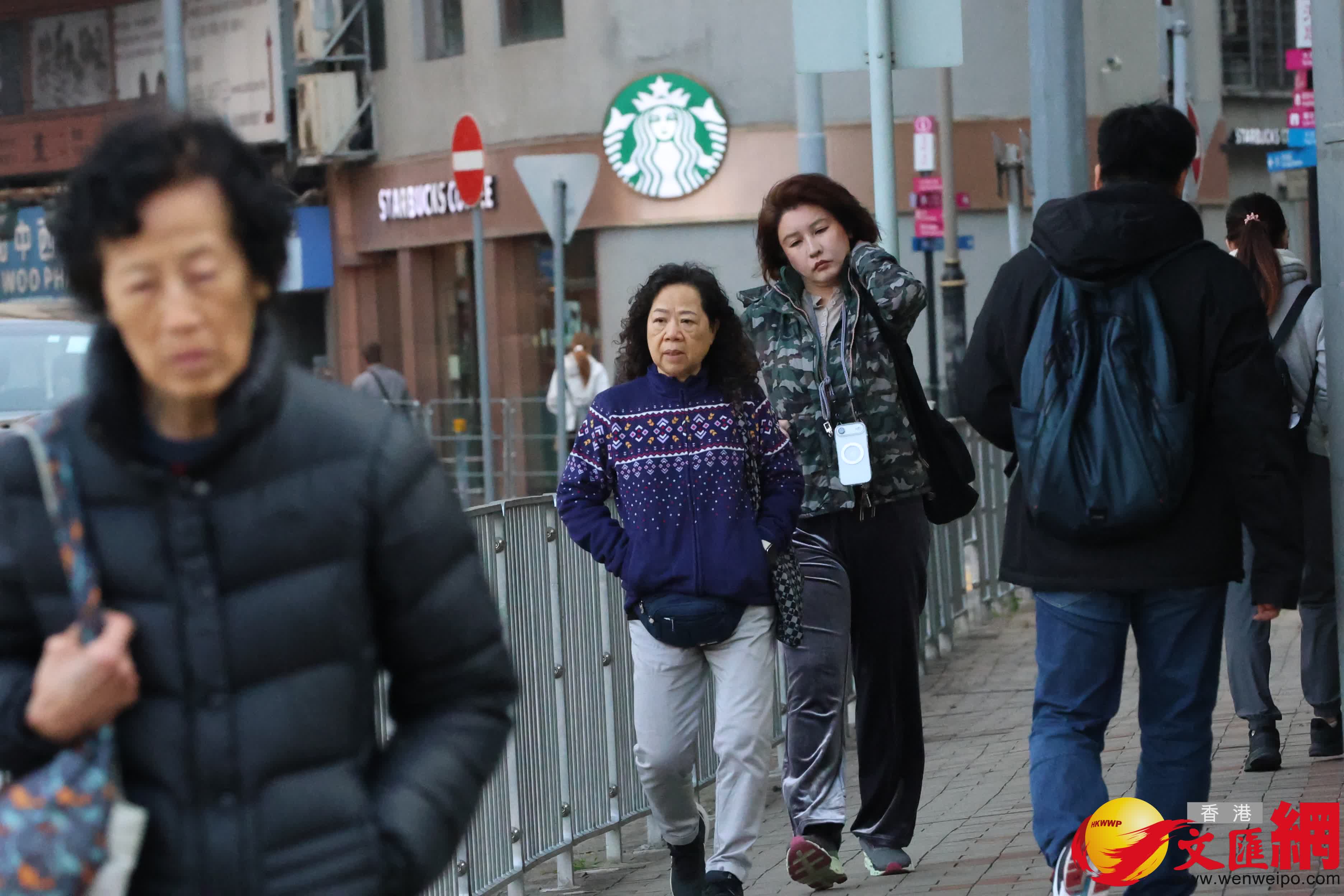 本港受乾燥的冬季季候風影響,天氣寒冷,寒冷天氣警告生效。截至今日(2日)上午8時15分,天文台錄得最低氣溫12.9度,是入冬以來最低紀錄。早上上班市民都緊裹着大衣急急步伐。(香港文匯報記者萬霜靈攝)