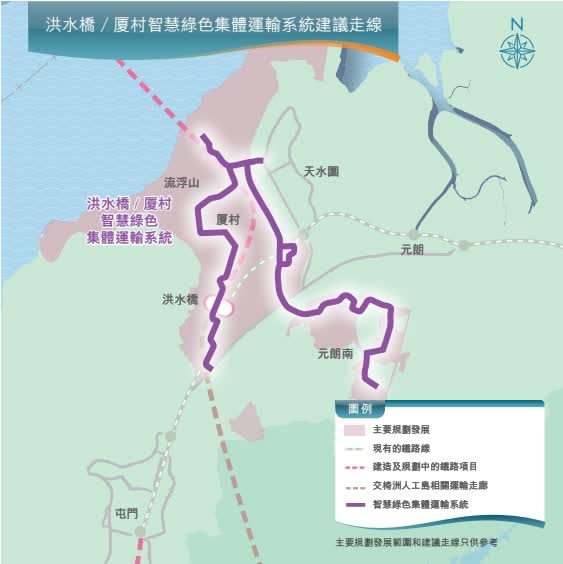 為配合洪水橋/厦村和元朗南新發展區,施政報告提出將分階段推展全長約16公里的智慧綠色集體運輸系統。政府今日(1月2日)刊憲公告,洪水橋/厦村新發展區智慧綠色集體運輸系統(第一階段)的建議道路工程獲授權進行。