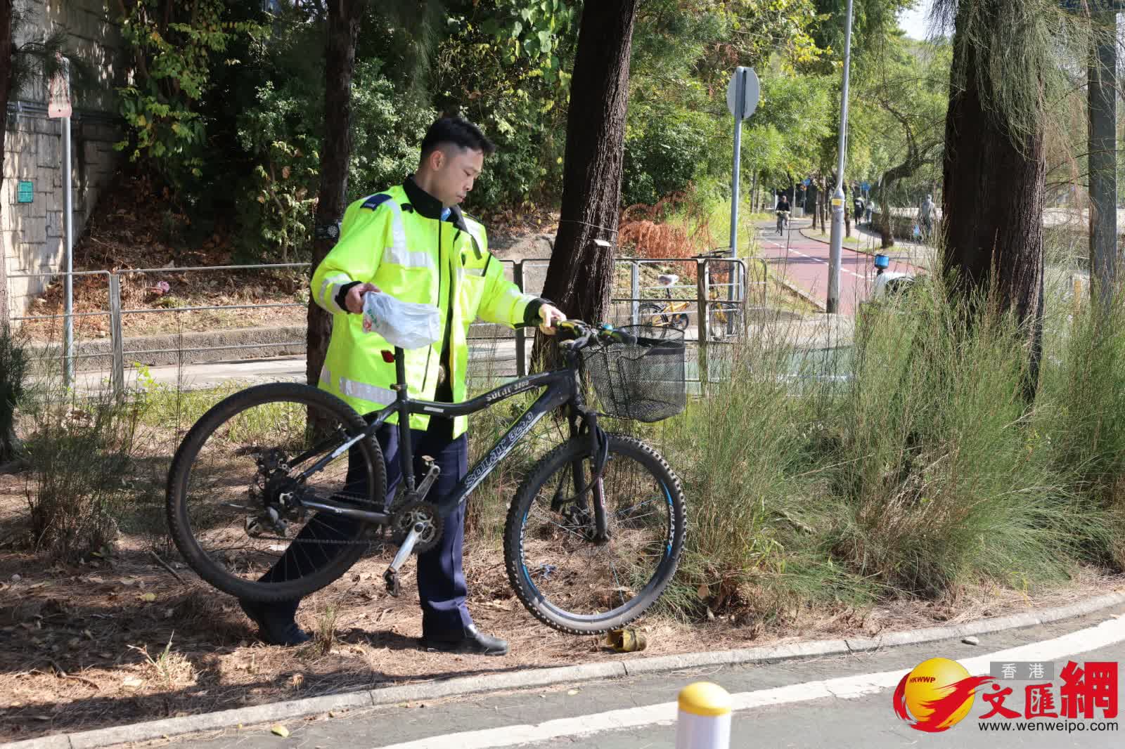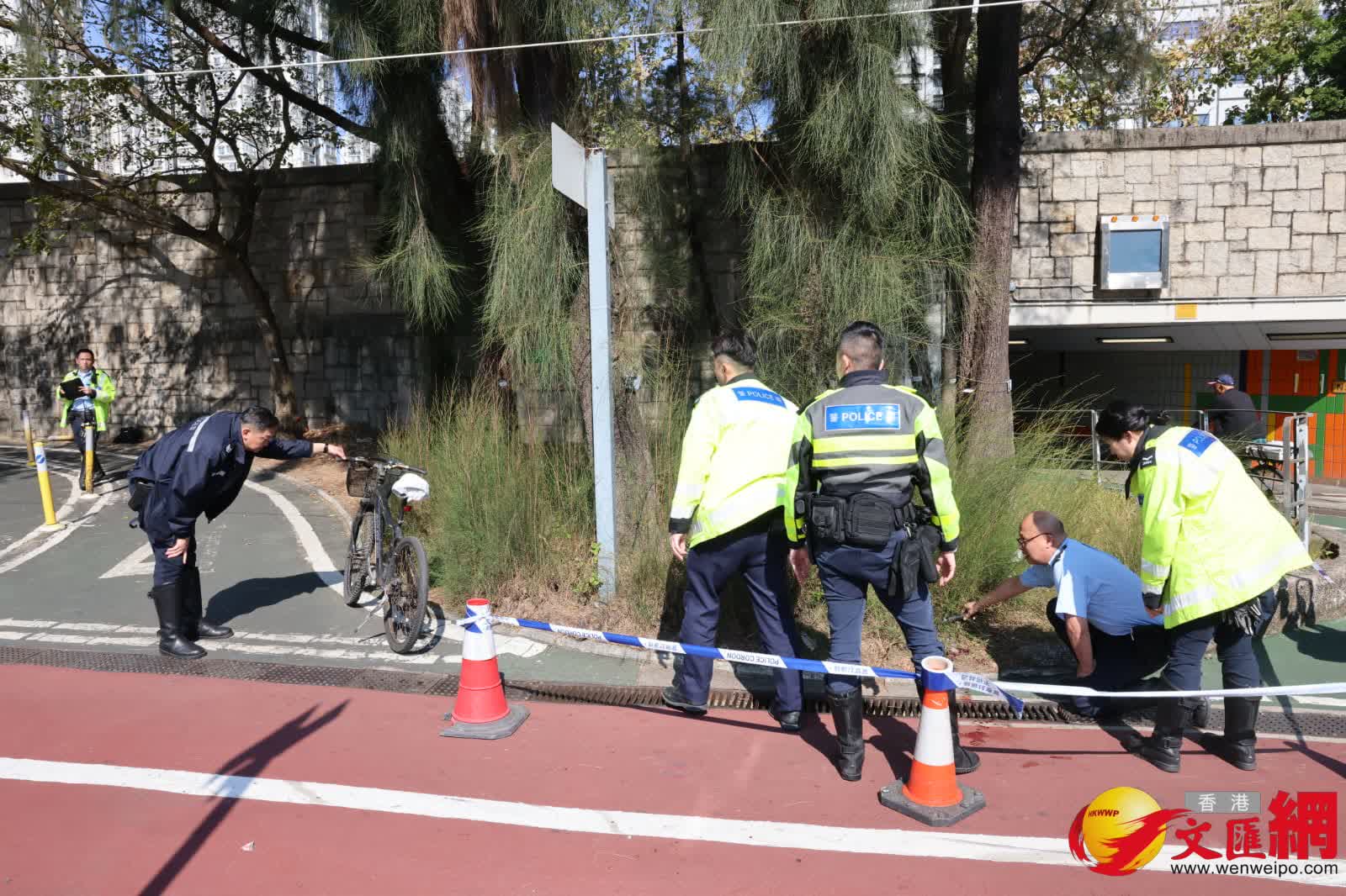 現場消息指,事發時傷者正與工友踏單車前往午膳,途中行在前方工友突然聽到後方傳來異響,轉頭赫見傷者已經翻車倒地,懷疑落斜時失控「自炒」,因未有配戴頭盔作保護,導致頭部受傷昏迷。