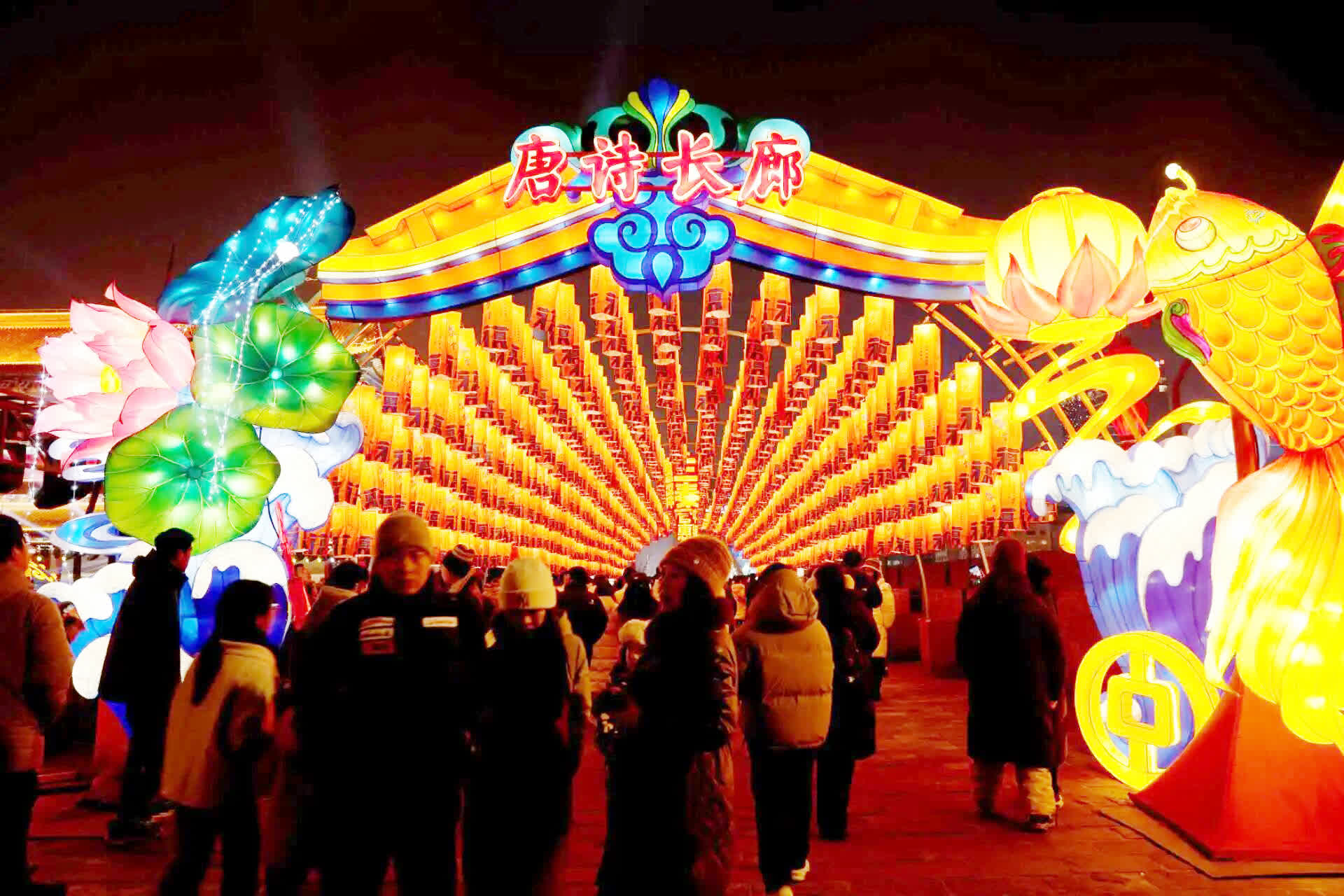 唐詩是唐文化最傑出的代表,西安被譽為「唐詩之都」,李白、杜甫、王維等眾多唐代詩人曾在這裏留下大量描繪城市風貌與人文精神的詩篇,現存近5萬首唐詩中,「長安」一詞更是出現超1400次。2026年「長安燈會」突破性打造「詩詞燈會」,大量使用詩詞元素作為燈組的核心靈魂。同時依託大唐不夜城唐風建築群,用光影藝術再現詩歌中的壯麗畫面,呈現一場前所未有的「詩路燈河」視覺盛宴。