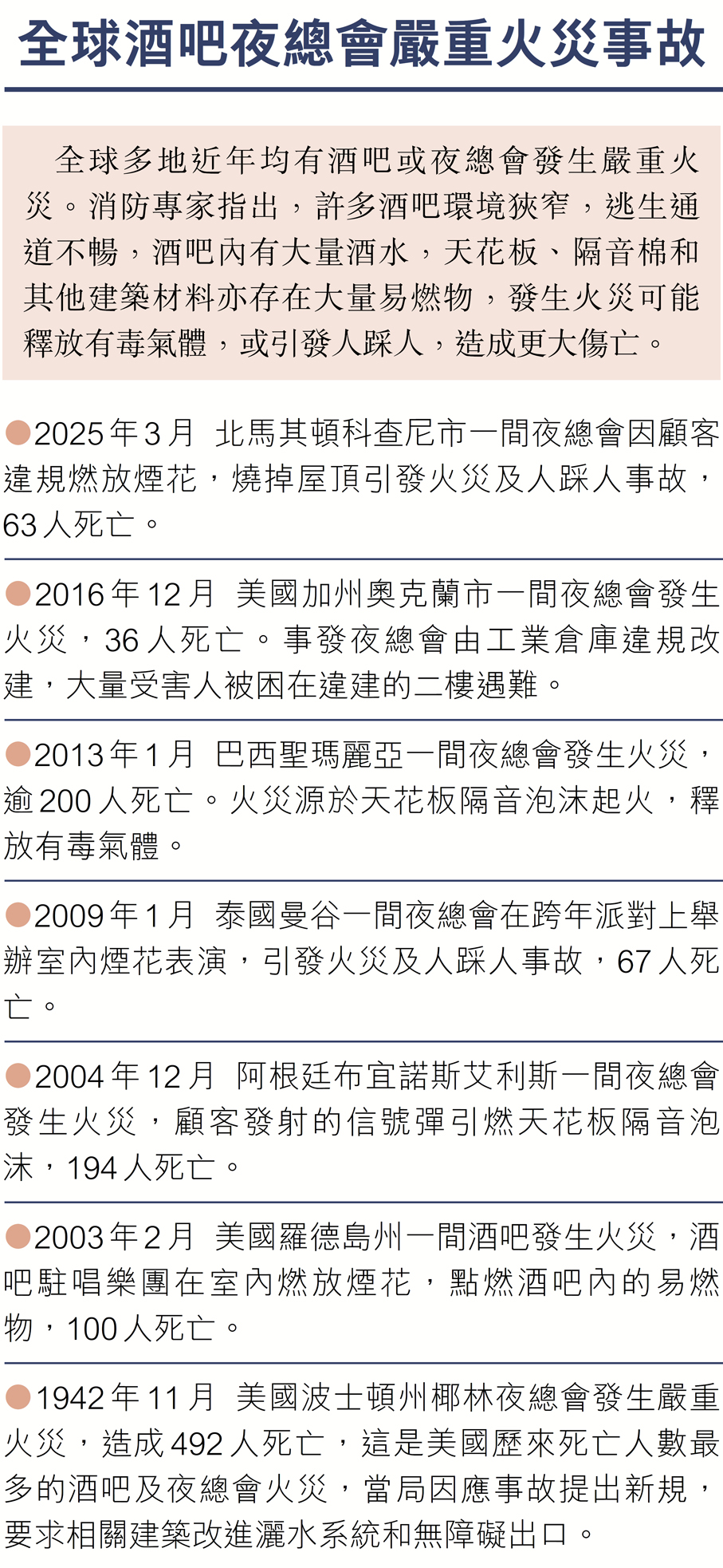 法新社與美國有線新聞網絡(CNN)均引述目擊者形容:「當時有女服務員拿着插着『煙花蠟燭』的香檳酒樽,她們把酒樽舉到離地下室的木製天花板很近的地方,結果引燃了天花板。」另有目擊者補充:「女服務員騎在另一位男服務員的肩膀上,酒樽內的煙花蠟燭噴出火焰,距離天花板只有幾厘米。天花板着火後只有約10秒鐘,整個酒吧便陷入火海。」