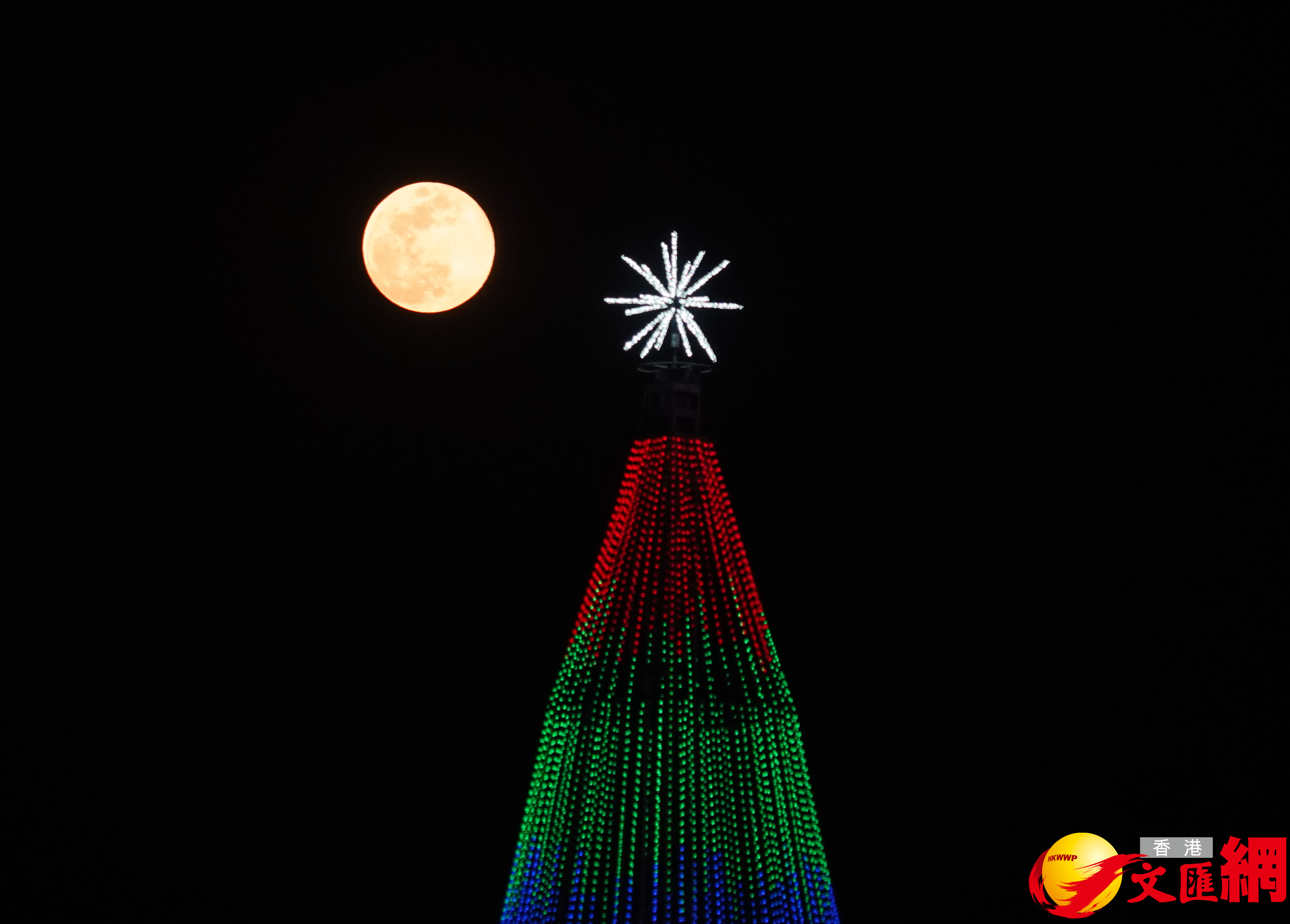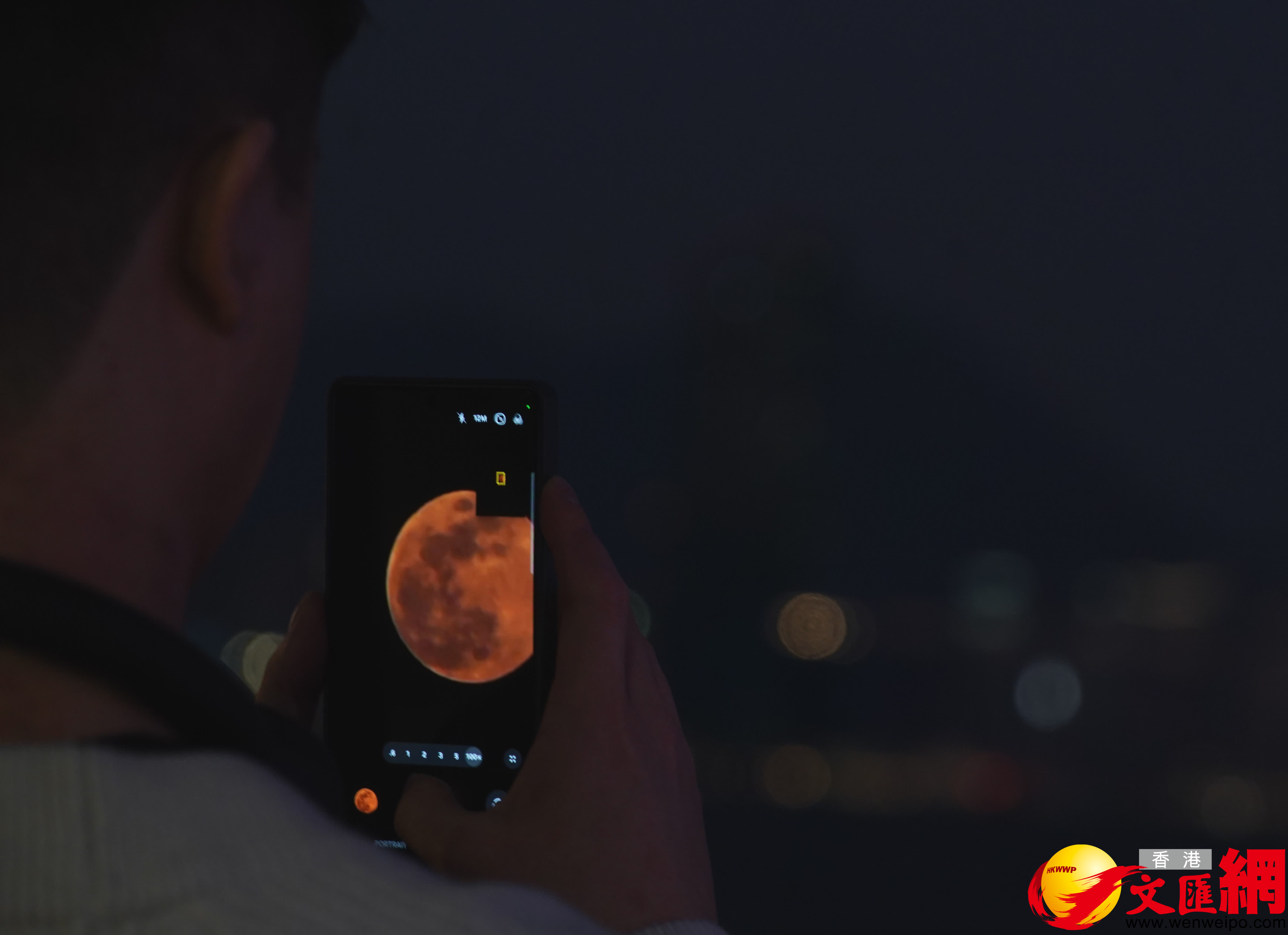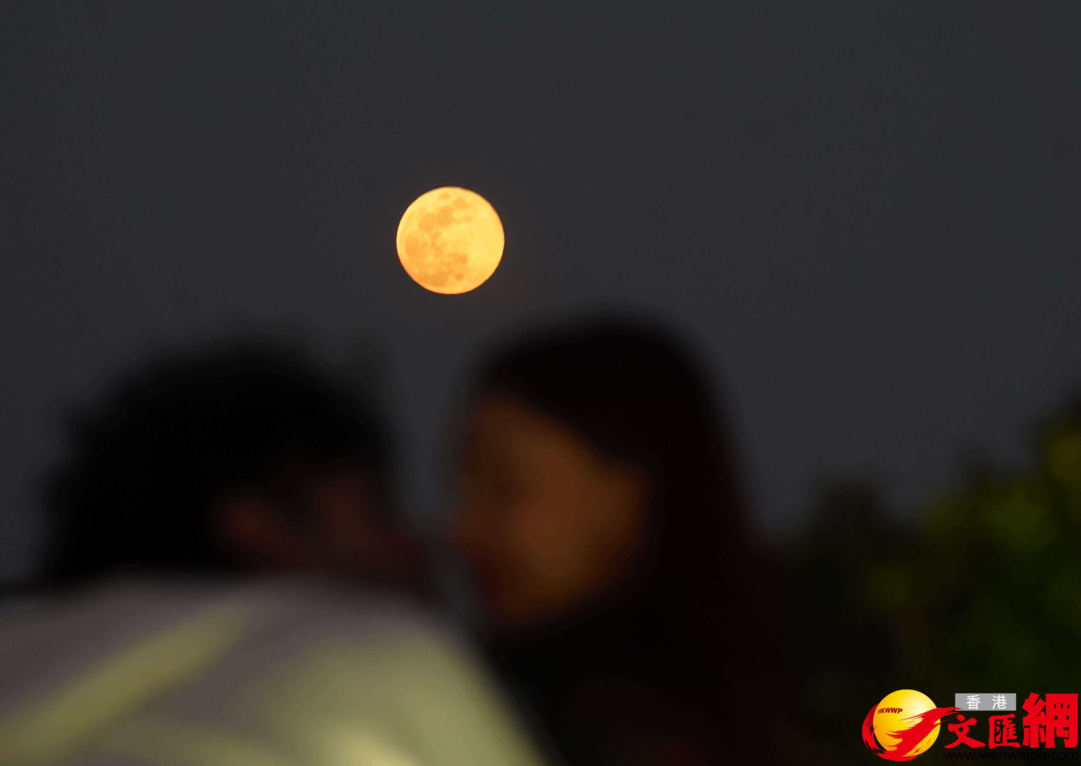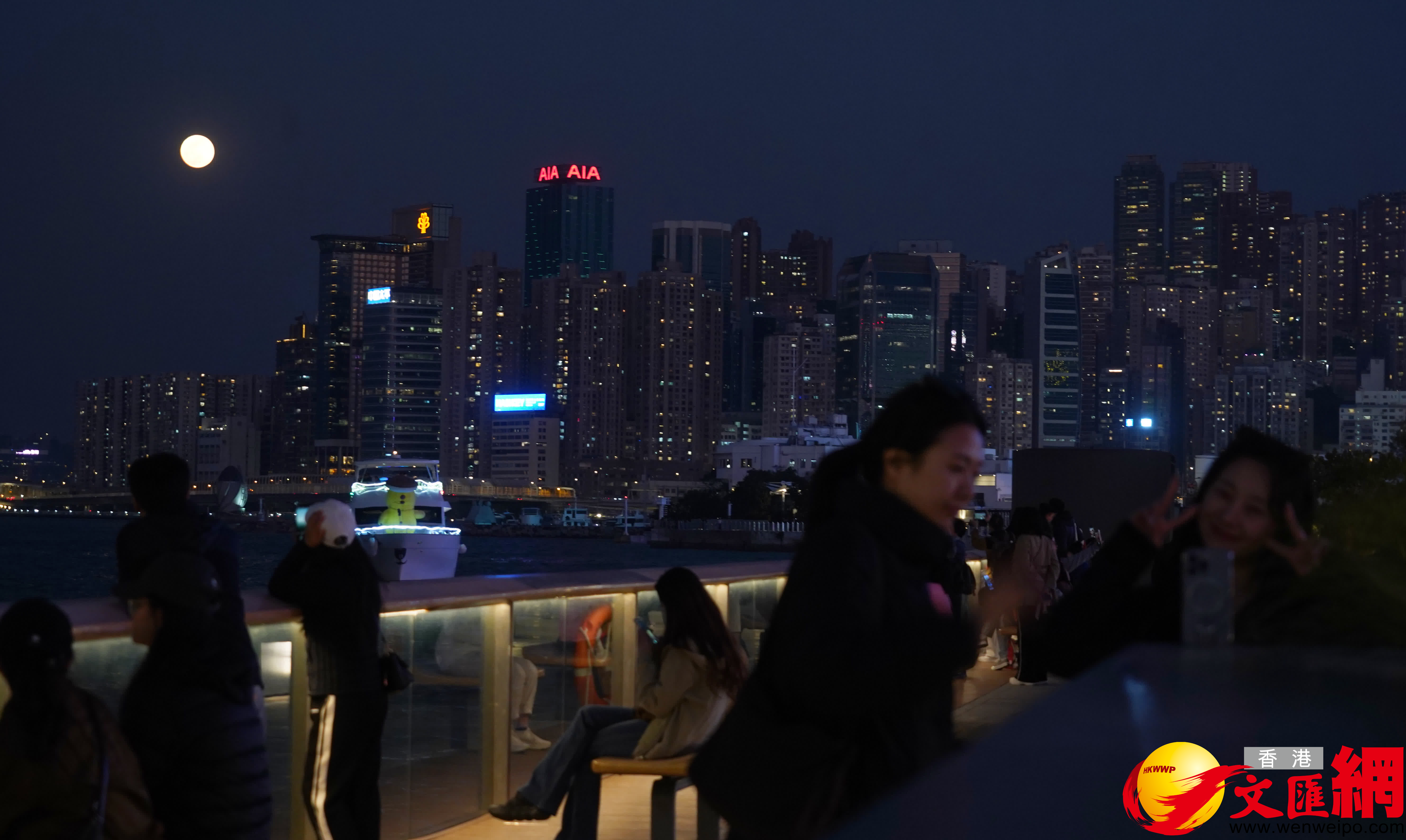 香港文匯報訊 今天(3日)是農曆冬月十五,香港夜空出現「超級月亮」,市民遊客紛紛駐足欣賞。(記者曾興偉 攝)