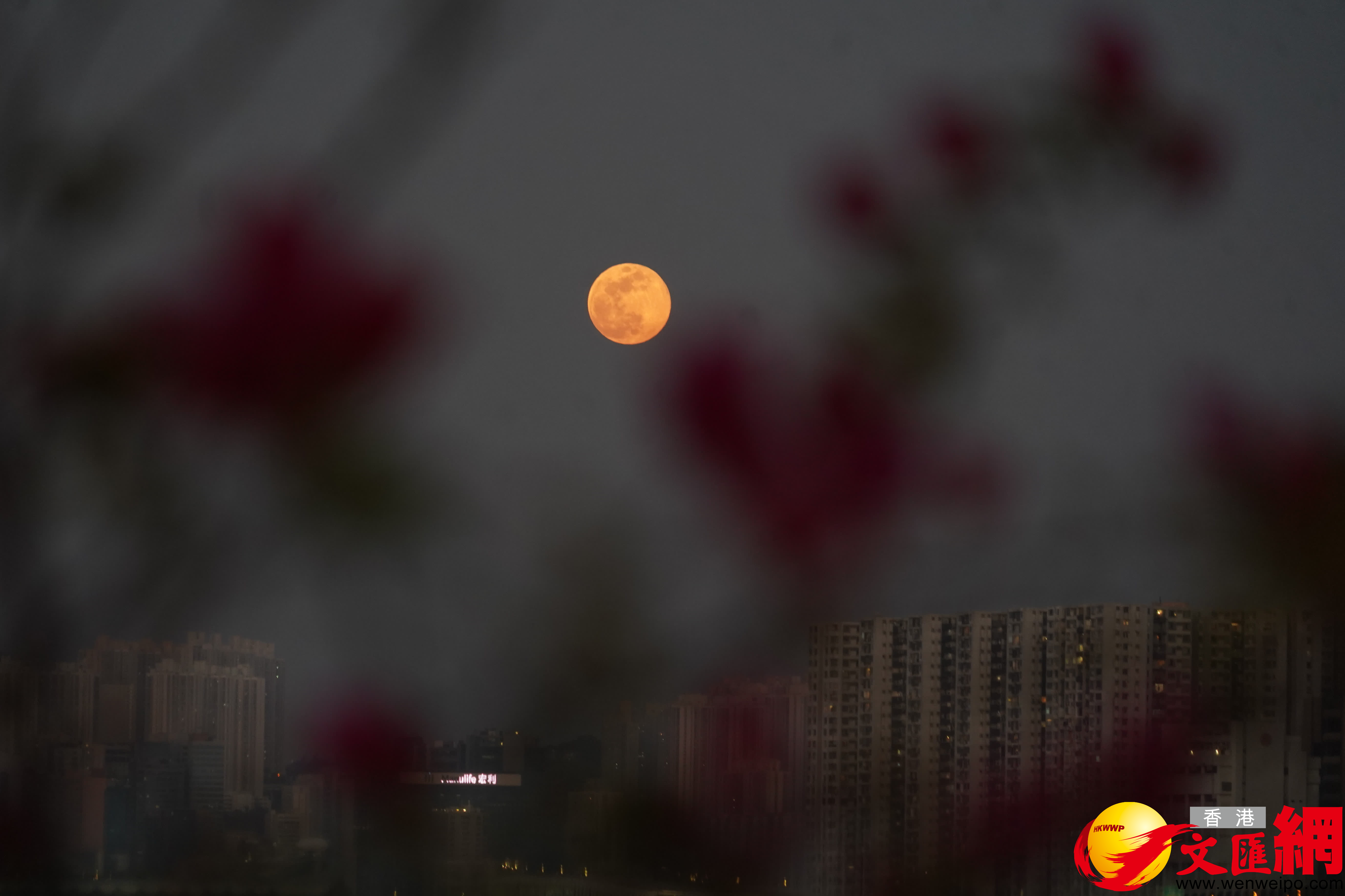 「超級月亮」現身香港 市民遊客紛紛駐足欣賞