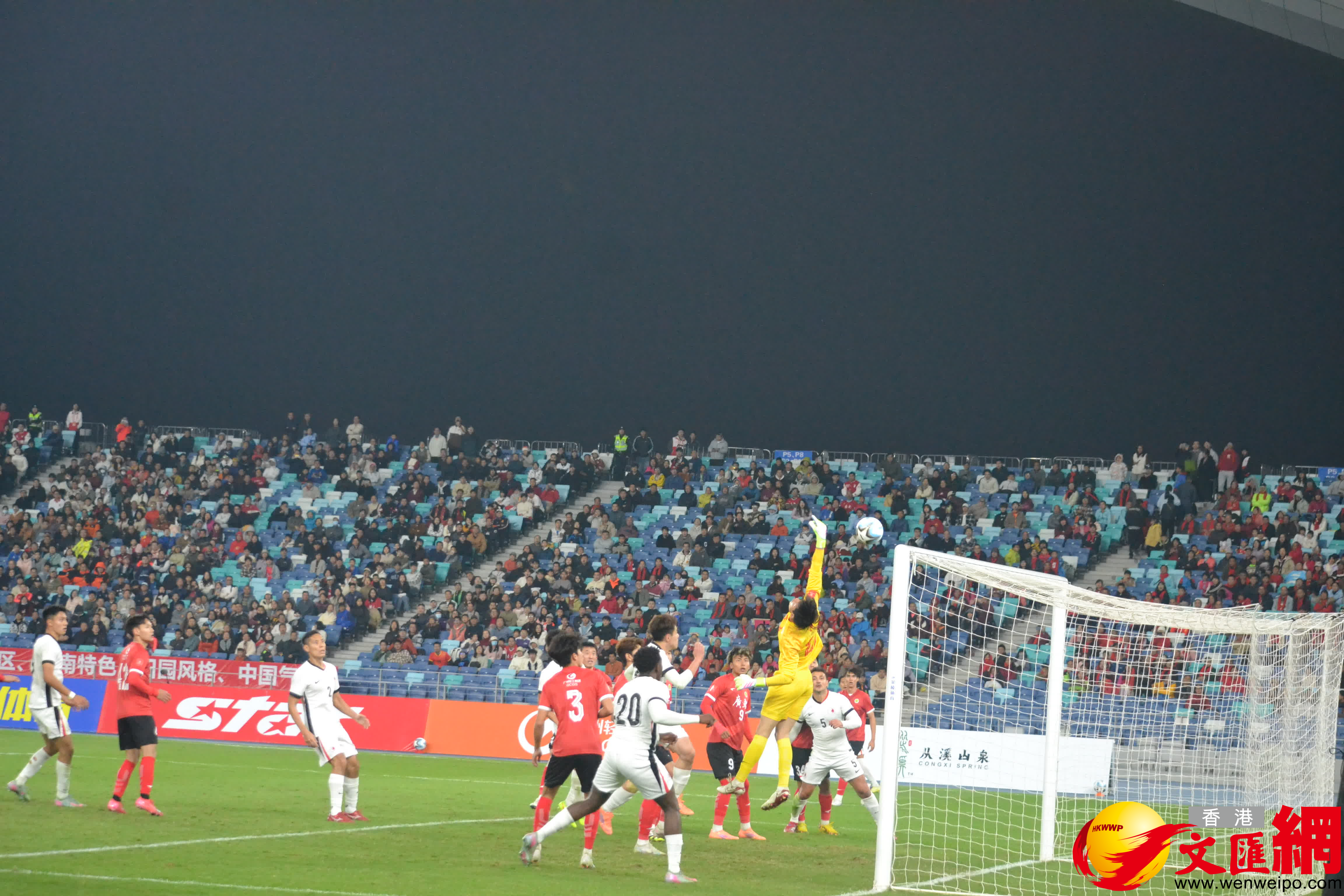本場比賽,雙方各打了半場好球。上半場,主場作戰的廣東隊適應比賽更早,踢得更主動,並先後把握兩次機會。下半場比賽,港隊有「接管」之勢,第60分鐘,孫銘謙在對方小禁區前沿接隊友精妙傳球,過掉守門員後輕鬆進球。第77分鐘,港隊迎來一粒燃動全場的精彩進球,港隊替補出場的黃威,罰角球時皮球直掛遠角入網,對方守門員毫無反應。之後,雙方再未取得進球。