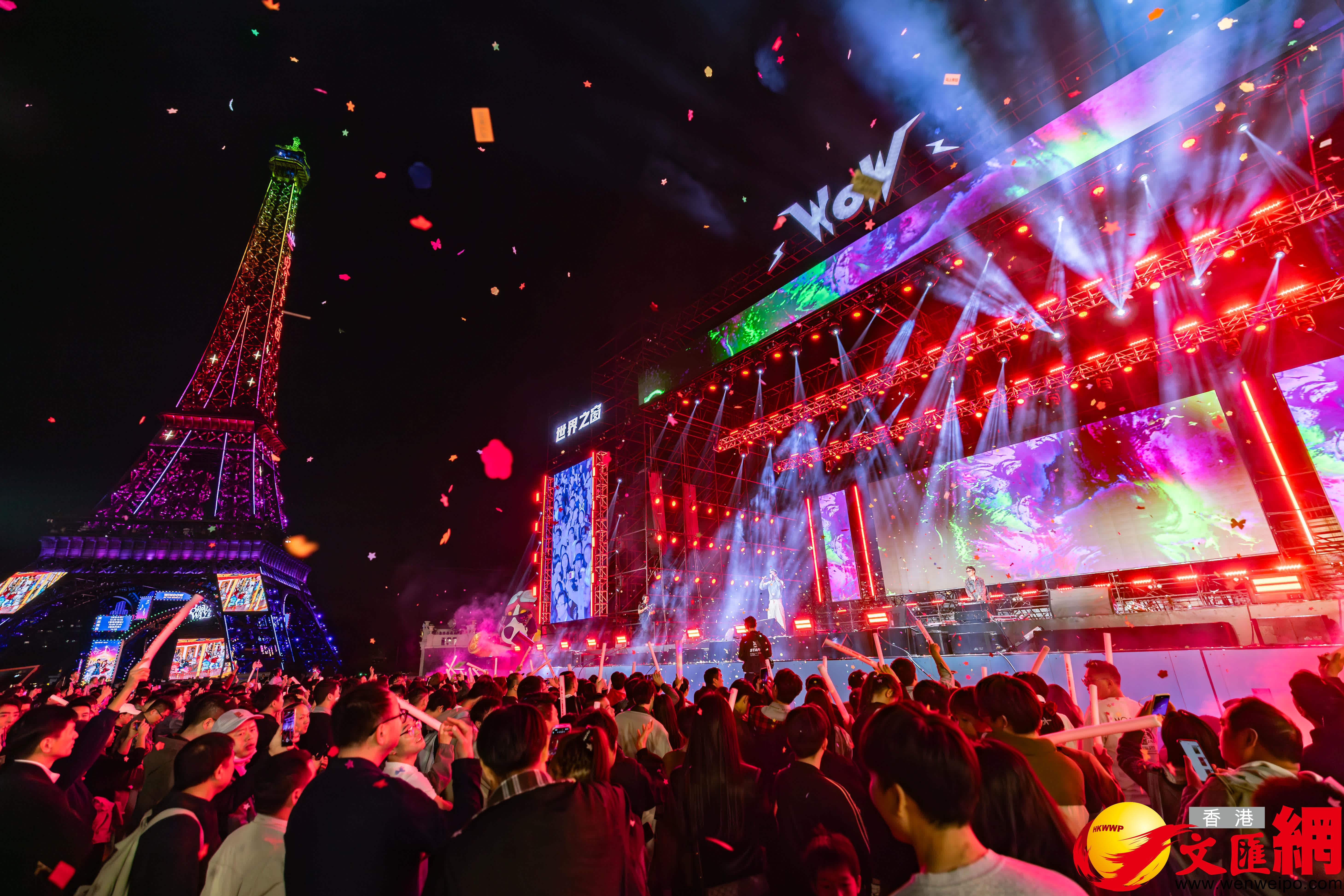 園區圍繞「日歡聚、夜璀璨」主題打造多元體驗。日場主打「歡笑熱梗節」、「LOVE SHOW」全景劇場及「閃光偶像舞台」三大互動板塊,融合熱梗巡遊、沉浸式觀演與偶像零距離互動,吸引大量遊客參與打卡。夜場則持續升級光影藝術與演藝體驗。全新演藝《拿破崙傳奇》在埃菲爾鐵塔震撼上演,配合燈光秀與騎士對決場景,贏得觀眾陣陣喝彩;經典回歸的《盛世紀》則以舞美敘事展現中華五千年文明。同時,「愛意氣球雨」、「飄雪電音盛宴」及每晚的高空無人機大秀,為夜色增添浪漫與科技交融的節日氛圍。