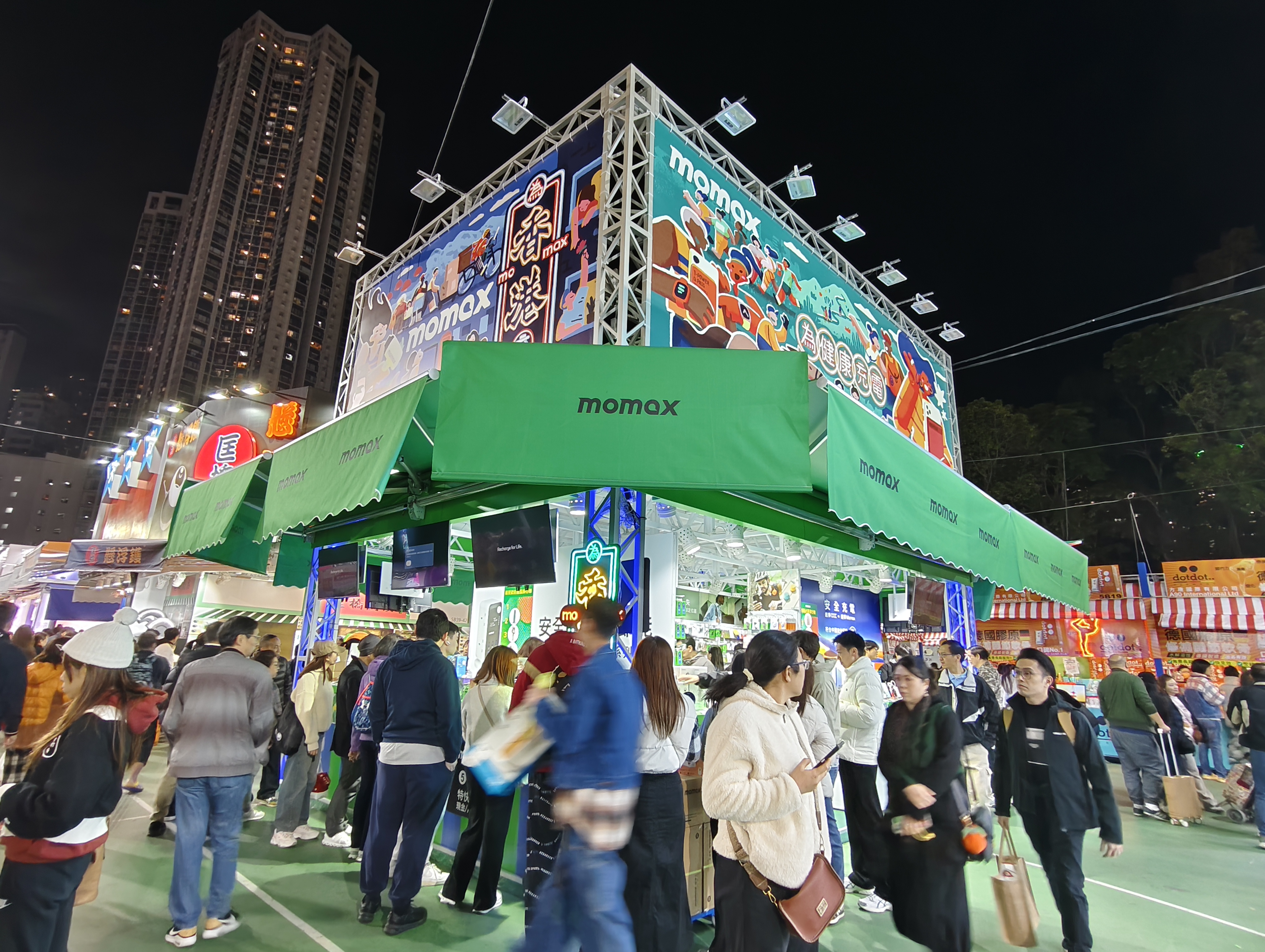 Momax更以行動為香港人打氣,創作了一幅 「為香港充電」的浮世繪,描繪奮鬥的香港人生活、工作,品牌精選多款皇牌產品,包括香港唯一真正獲得安全認可的一體式直立拖板、CCC國家安全認證流動電源、多國通用的旅行插頭,以及支援全球定位的Find My Locator以供選購,全面升級日常與旅遊使用所需。