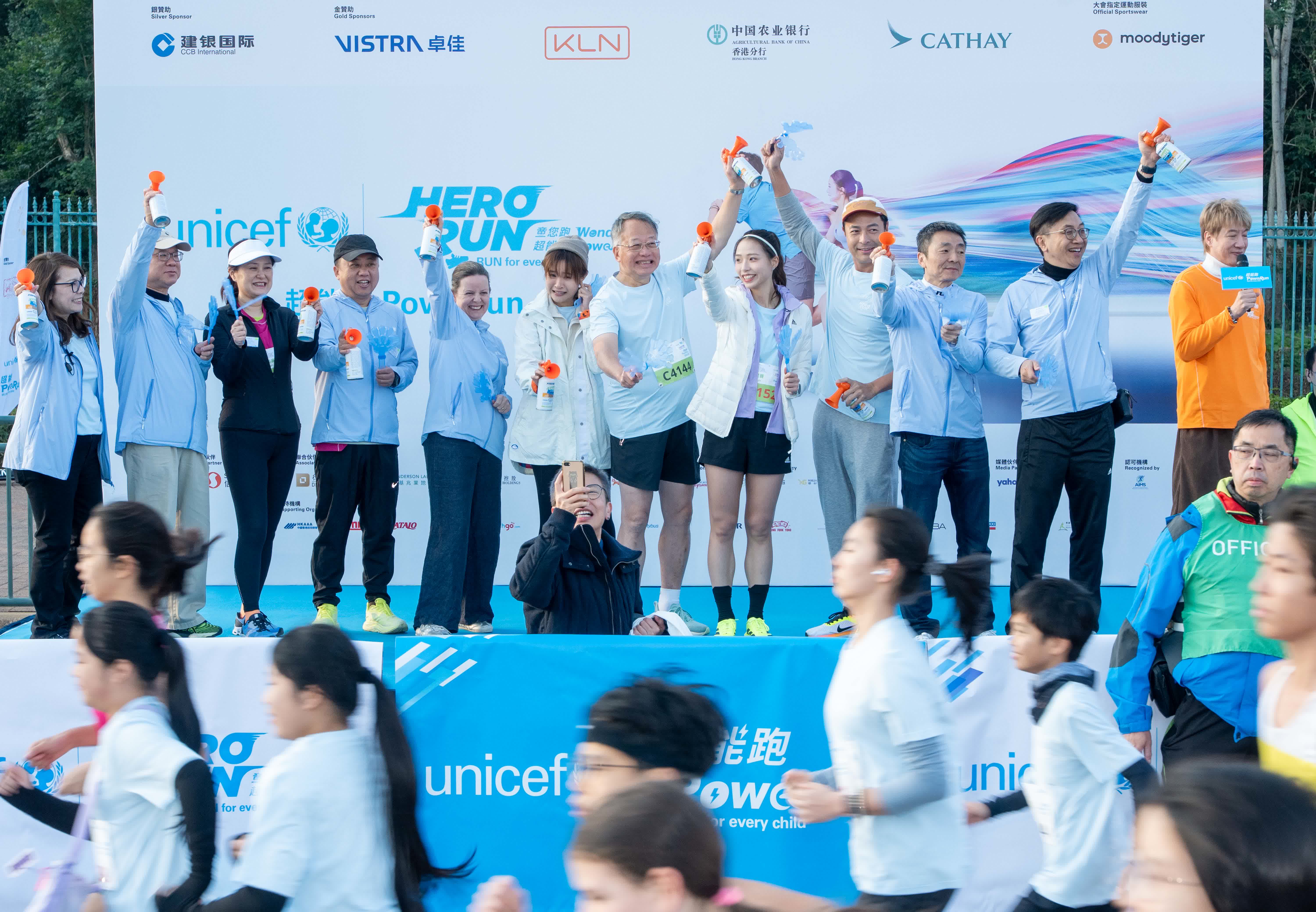 香港文匯報訊(記者 子棠)張達倫、岑樂怡、蔡寶欣、鄧穎芝、張敬仁、黃俊豪(Jeremy)及前港隊單車手馬詠茹(Vivian)等,今日(4日)參與聯合國兒童基金會(UNICEF)慈善跑「超能跑PoweRun」挑戰不同距離賽事,以行動為全球兒童籌款。 張達倫雖因傷未能落場,仍出席擔任鳴槍嘉賓。