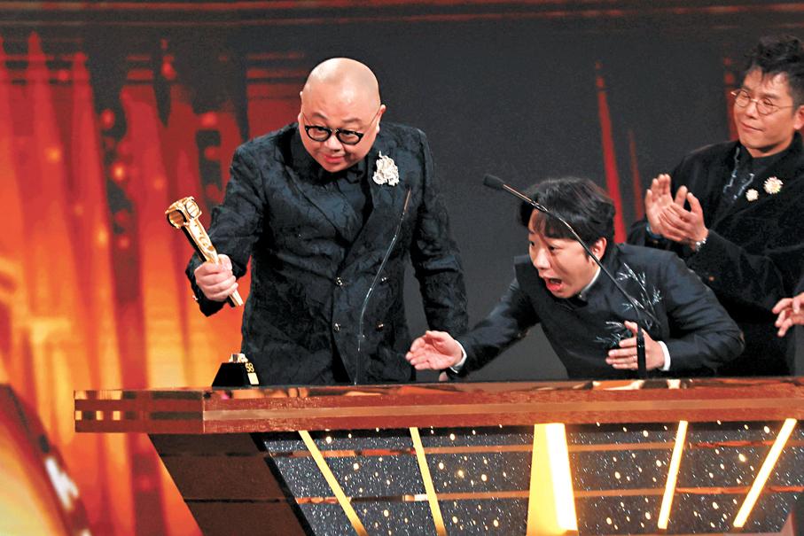 香港文匯報訊(記者 達里、梁靜儀 澳門報道)TVB年度盛事《萬千星輝頒獎典禮2025》昨晚假澳門上葡京綜合度假村舉行,全晚最受注目的大獎「最佳女主角」本屬《新聞女王2》的佘詩曼、《巨塔之后》的宣萱之爭,不過後者事先張揚不會到澳門出席頒獎禮,令視后之爭毫無懸念,最終佘詩曼亦順理成章四封視后;「最佳男主角」由黃宗澤憑《新聞女王2》首次奪得,《新聞女王2》囊括9獎成大贏家。TVB昨晚感謝曾志偉的卓越貢獻,向他頒發「萬千光輝榮譽傳奇大獎」,並宣布委任其出任新成立諮詢委員會召集人,持續推動節目創新與策略合作。