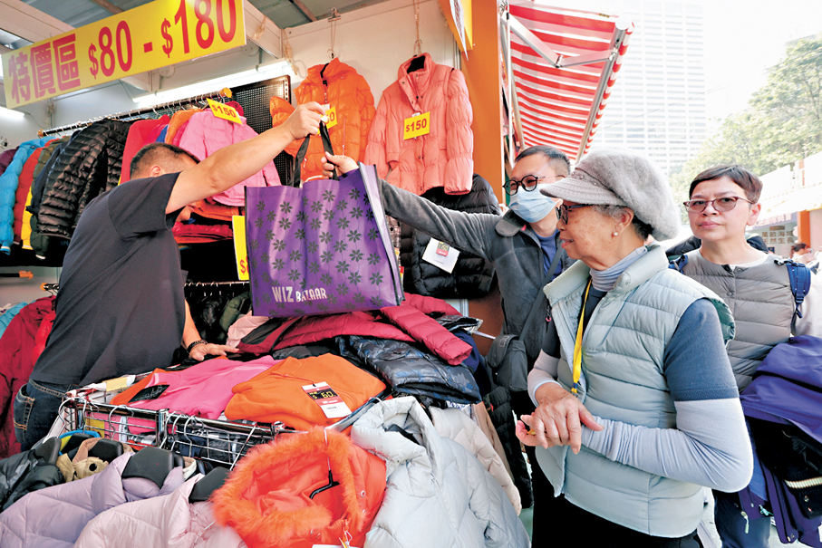 近日氣溫下降,香港天文台表示,本周中期最低氣溫進一步降至只有攝氏12度,現場的禦寒衣物成為市民搶購目標。其中,林女士購買一件原價60元、現場只售十元的長袖衫,「衣服質量和外面一樣好,但價格抵好多。」她亦滿意今屆工展會的貨品種類和價格。