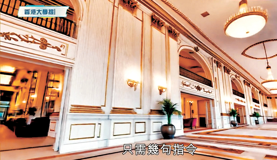 香港大學電機電子工程系的最新技術,藉着向AI發出指令,能實時生成3D場景,負責的副教授黃毅介紹指:「例如說出『創造一間豪華酒店,要有長走廊、溫暖的金黃燈光、典雅的牆壁裝飾、具有深邃的層次感』,三維場景便會呈現眼前。」