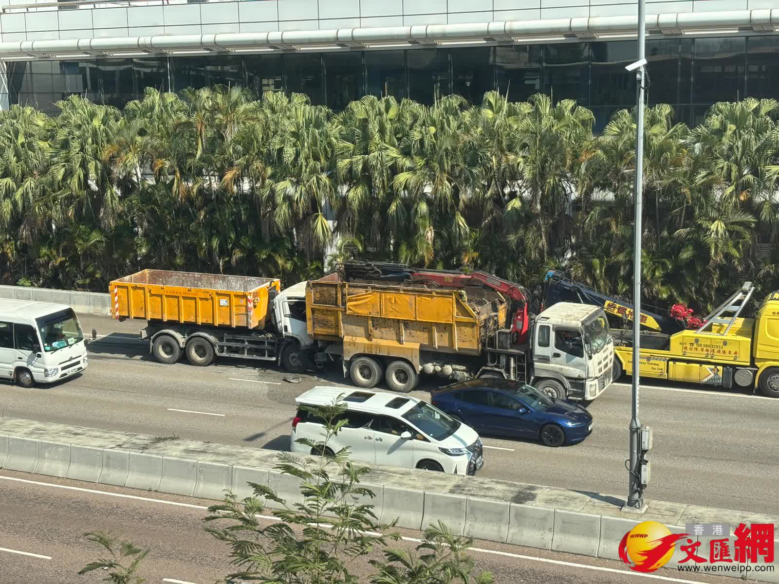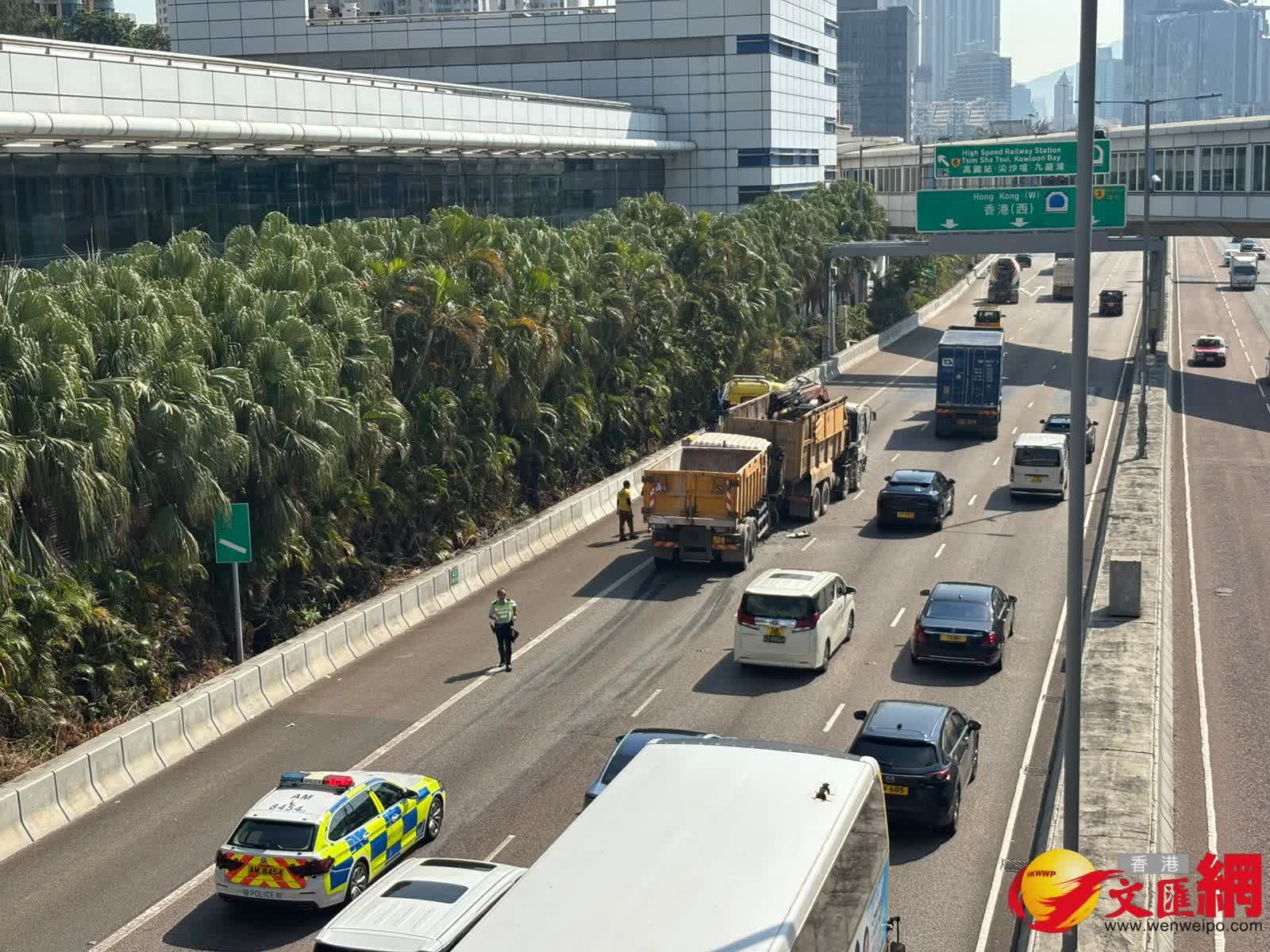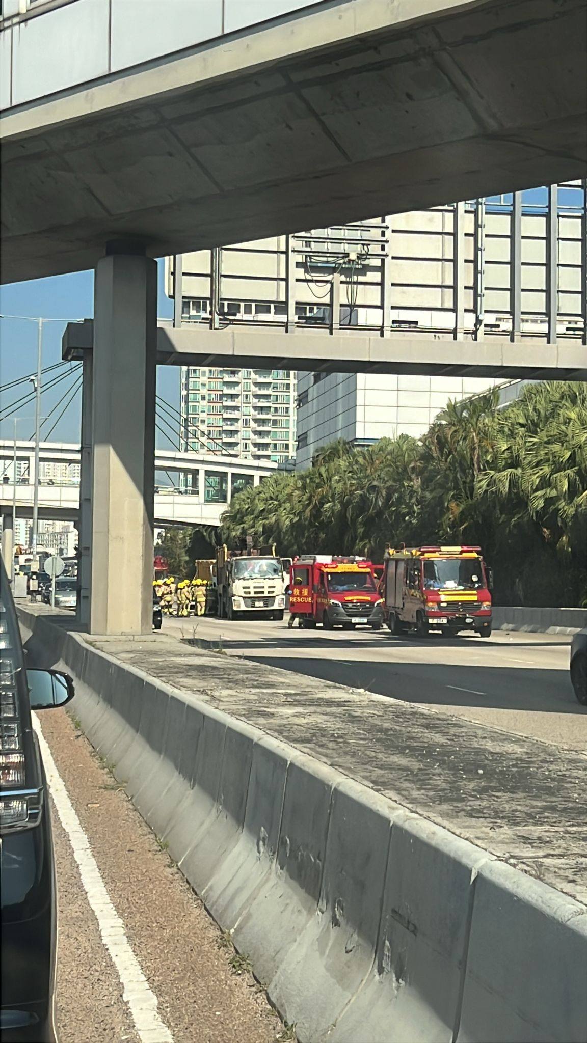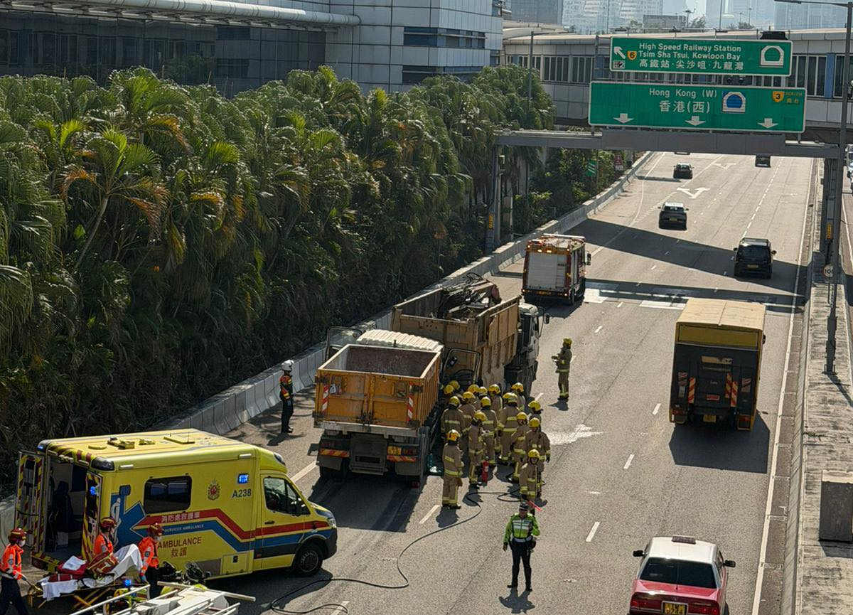 西九龍公路今日(5日)發生交通意外。早上10時46分,往香港方向近奧運港鐵站兩部貨車相撞,後車司機清醒被困車內,消防人員到場營救。運輸署表示,因交通意外,西九龍公路(來回方向)近奧運港鐵站的部分行車線現已封閉,駕駛人士只可使用餘下行車線行車,現時上址交通繁忙。