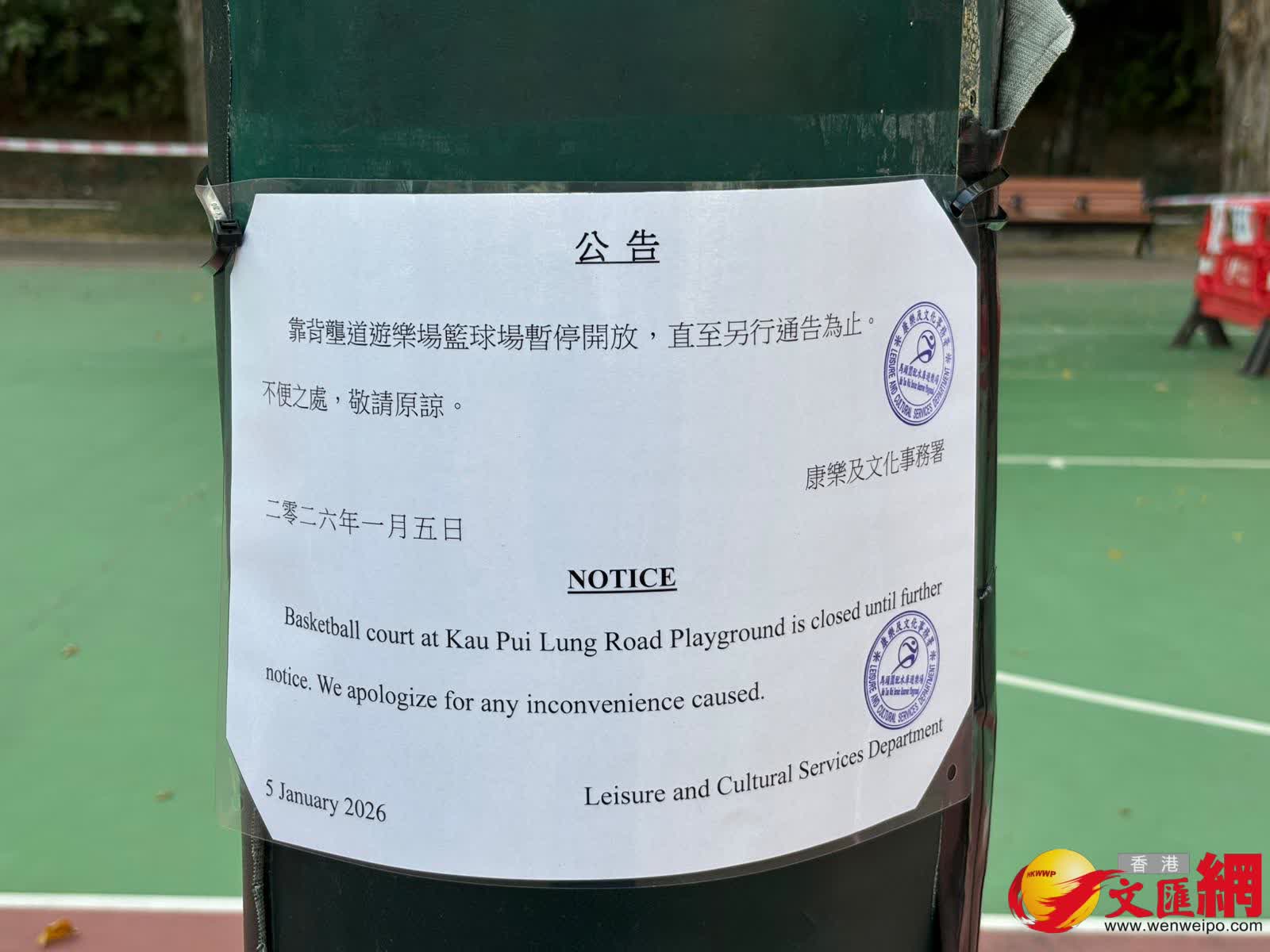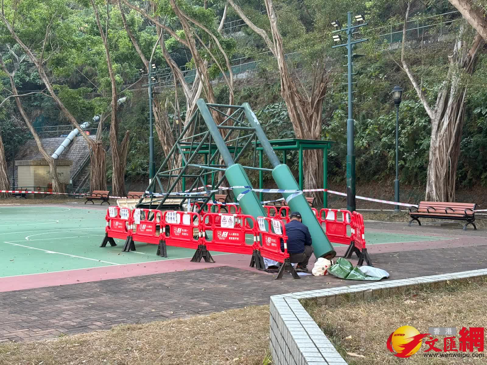 香港文匯報訊(記者 蕭景源)土瓜灣靠背壟道遊樂場的籃球場,昨晚(4日)發生籃球架倒塌壓傷人意外,一名青年受傷送院,初步相信是籃球架支柱鏽融老化致塌下。倒塌的籃球架今日(5日)仍未被移走,但與現場連同另一個同類籃球架已被圍封,康文署亦貼出公告指上址球場暫停開放直至另行通告,並有一名疑似工作人員到場檢查。有街坊對事件感到擔心,直言當局「應加強定期檢查及翻新。」