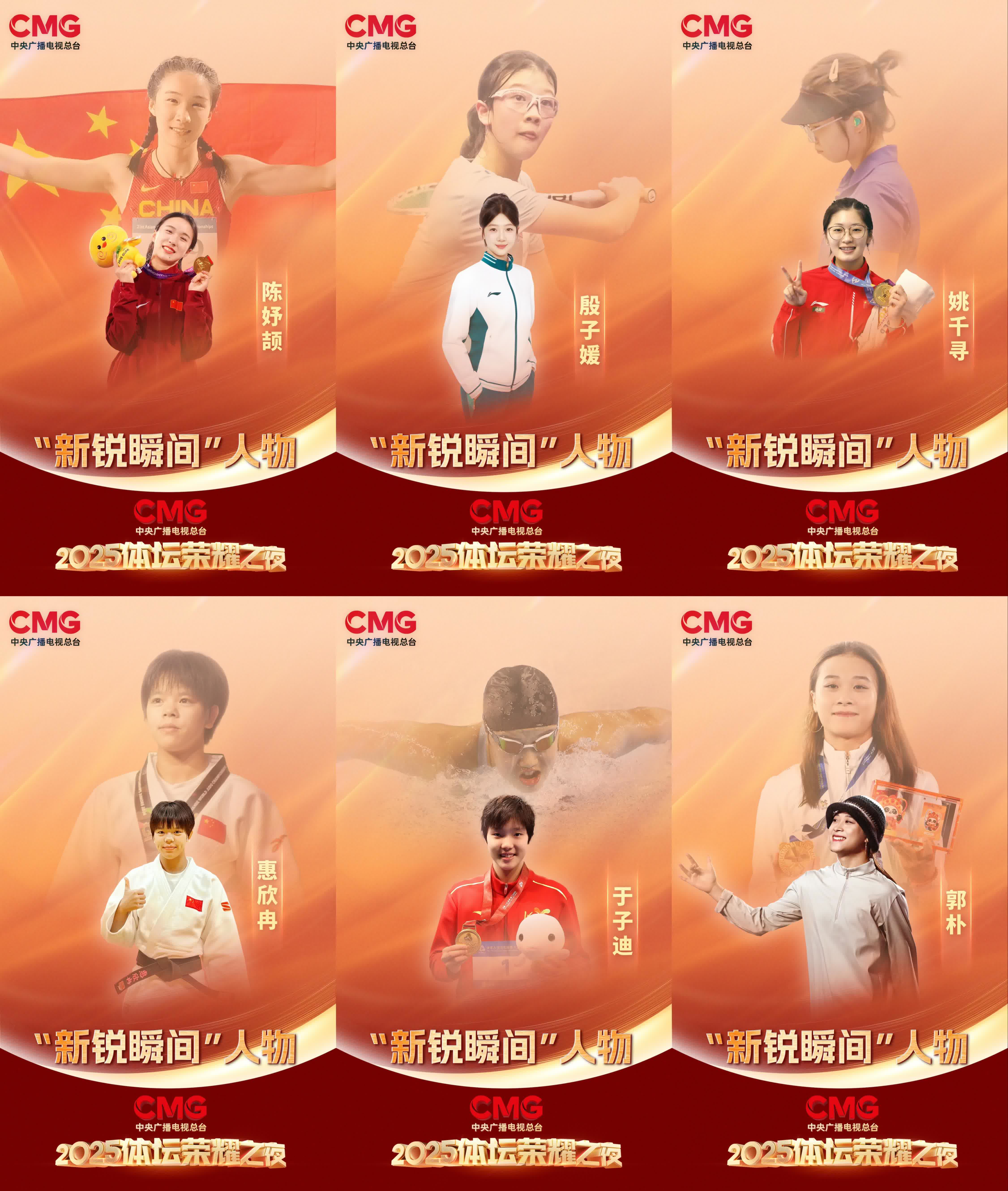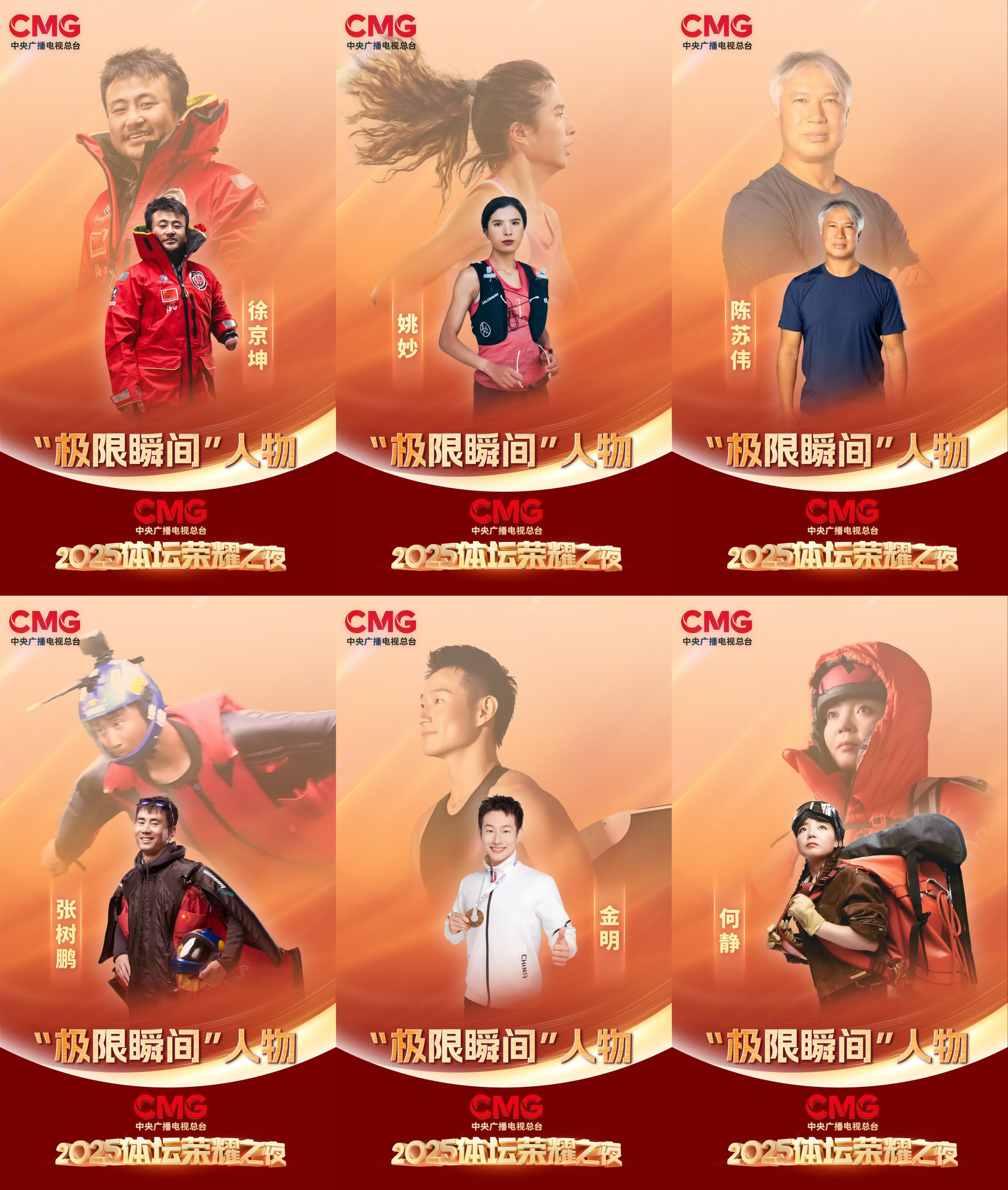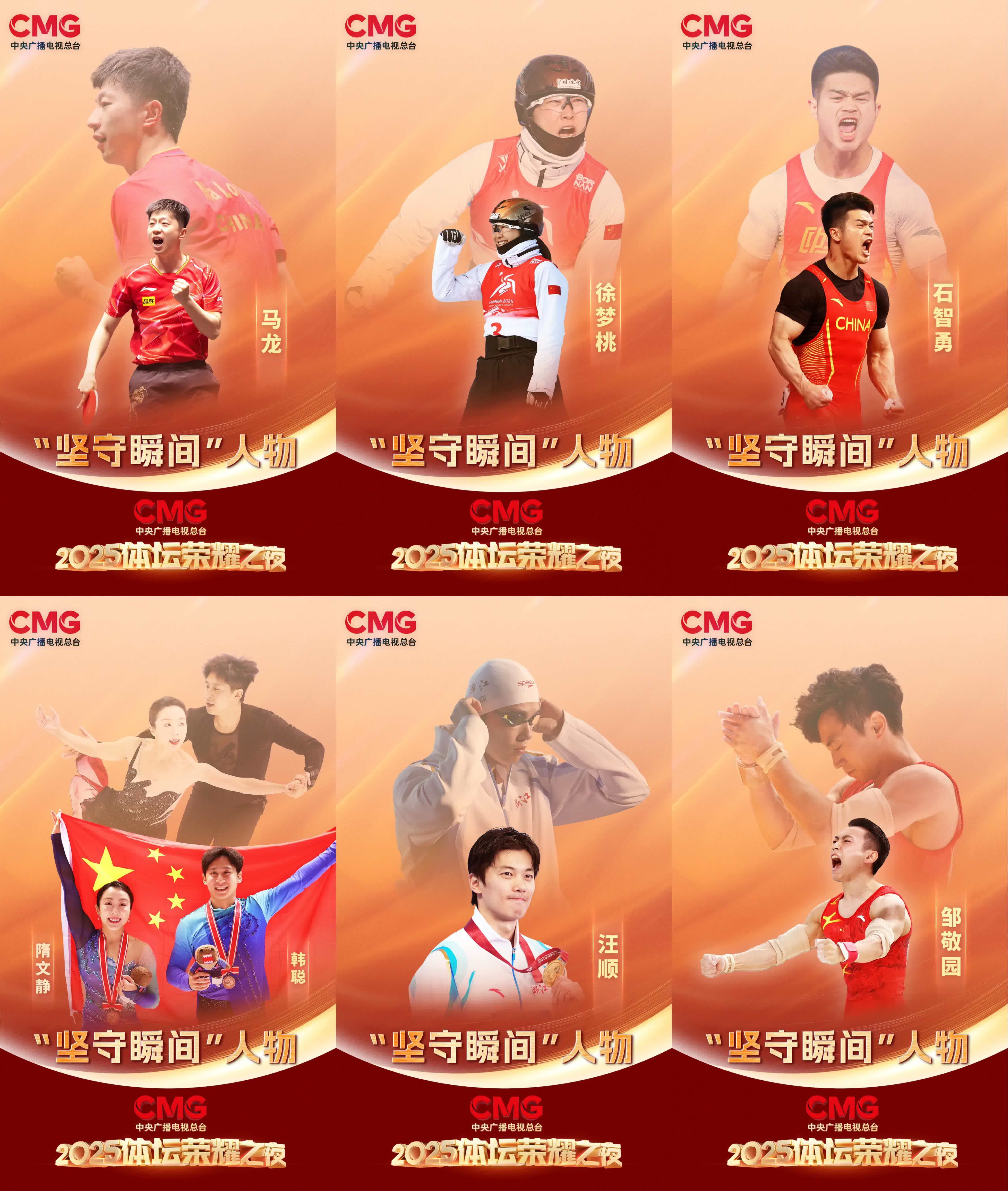 1月5日,2025中央廣播電視總台體壇榮耀之夜在總台央視綜合頻道(CCTV-1)、體育頻道(CCTV-5)黃金檔播出。活動現場揭曉了「突破瞬間」「堅守瞬間」「新銳瞬間」「極限瞬間」「並肩瞬間」「閃耀之星」「致敬瞬間」「全民瞬間」8項榮譽,串聯起中國體育的年度記憶,並設置 「跨越時間的對話」「相約粵港澳」「中華體育精神頌」等特別環節,致敬過去一年中國體壇的卓越成就。