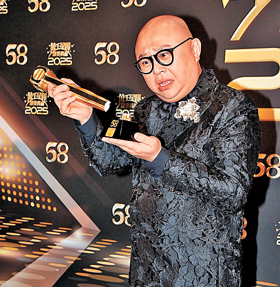 香港文匯報訊(記者 達里、子棠)「最佳男主持」得主林盛斌(Bob)台上心情激動致大力拍爛獎座,事後他坦言因太亢奮,想不到第一次得獎腦海會一片空白,本身他準備一大段感謝詞,結果只講了六成,「這個獎我等了很多年,對我有很大鼓勵!」至於他成為史上弄爛獎座第一人,Bob笑道:「證明人生是充滿可能性,將不可能變成可能,幸好台上的只是道具獎座,真的那個我會好好鑲起來放進保險箱,連子女都不准碰。」出名是圈中紅娘的Bob,高興見胡定欣找到另一半,笑稱2026年唯一目標是幫剛宣布分手的陳庭欣,他誇口道:「今年我只幫她一個找,幫她找一個過10億身家的人。其實近大半年來,有很多行內外的朋友都問我有沒有筍盤介紹,能夠撮合到大家,我是相當高興。」