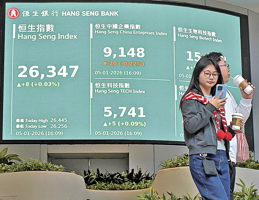 信達國際研究部助理經理陳樂怡表示,「北水」在2025年大舉掃入本港科技、金融股,令去年大市表現突出。至於2026年情況會否持續,則仍有待觀察。她認為,現時政策處於「真空期」,暫時估計恒指會在26,000點左右上落。