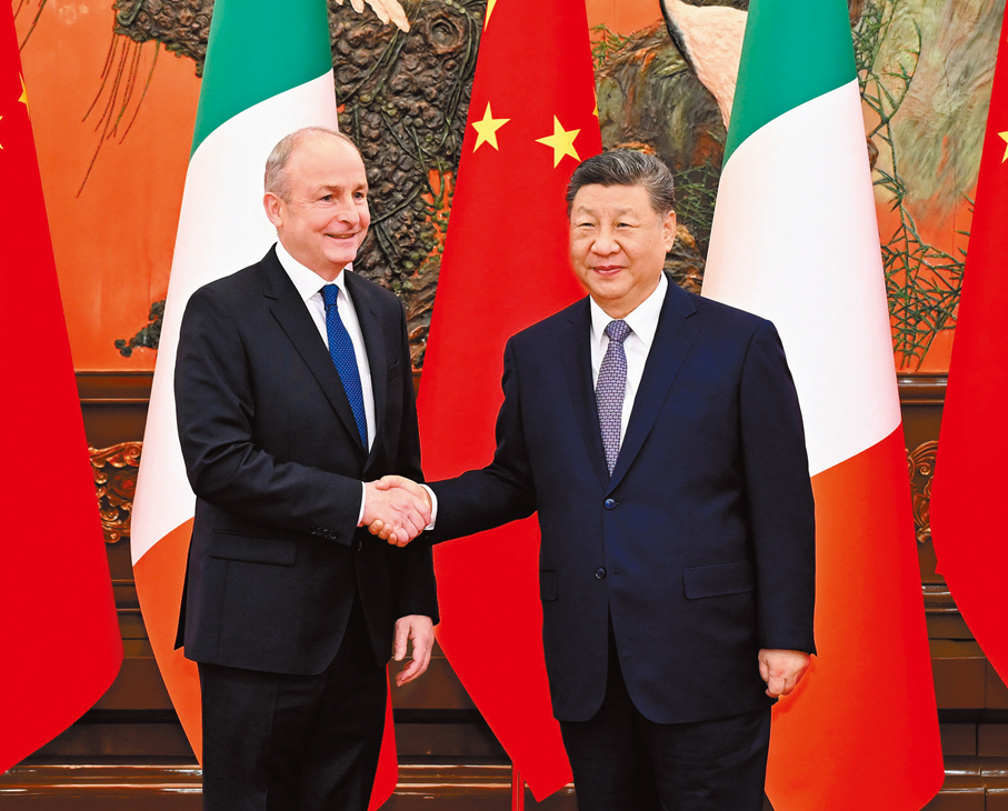 香港文匯報訊 綜合記者馬靜及新華社報道,1月5日上午,國家主席習近平在北京人民大會堂會見來華進行正式訪問的愛爾蘭總理馬丁。習近平在會面中強調,中愛雙方要保持多層級、多領域友好交往,不斷增進溝通和理解,照顧彼此核心利益和重大關切,鞏固政治互信,築牢雙邊關係政治基礎。國際問題專家表示,愛爾蘭總理時隔14年再次訪華,不僅是雙邊關係的里程碑,也是中歐關係的一塊「試金石」。