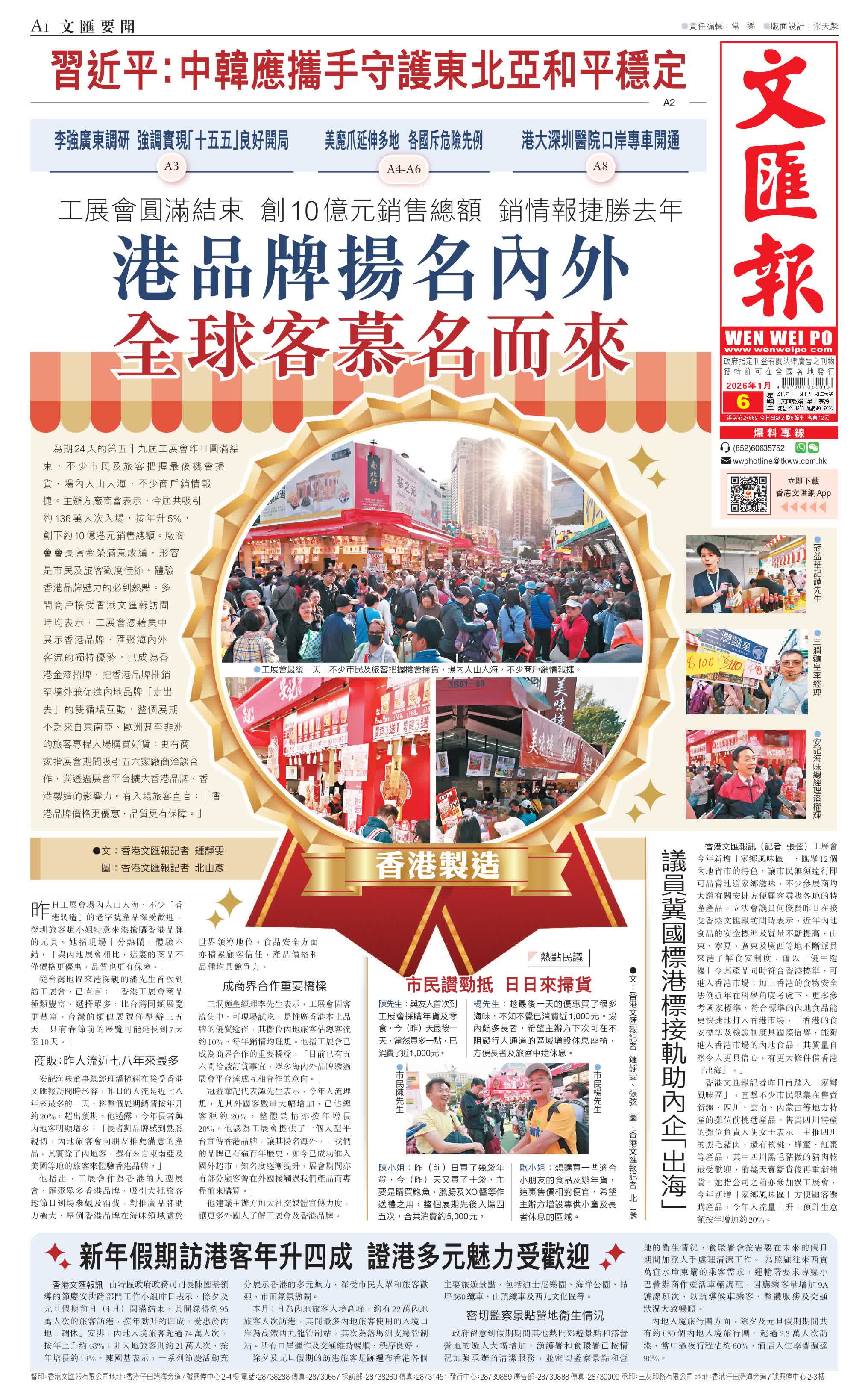 香港文匯報訊(記者 鍾靜雯)為期24天的第五十九屆工展會昨日圓滿結束,不少市民及旅客把握最後機會掃貨,場內人山人海,不少商戶銷情報捷。主辦方廠商會表示,今屆共吸引約136萬人次入場,按年升5%,創下約10億港元銷售總額。廠商會會長盧金榮滿意成績,形容是市民及旅客歡度佳節、體驗香港品牌魅力的必到熱點。多間商戶接受香港文匯報訪問時均表示,工展會憑藉集中展示香港品牌、匯聚海內外客流的獨特優勢,已成為香港金漆招牌,把香港品牌推銷至境外兼促進內地品牌「走出去」的雙循環互動,整個展期不乏來自東南亞、歐洲甚至非洲的旅客專程入場購買好貨;更有商家指展會期間吸引五六家廠商洽談合作,冀透過展會平台擴大香港品牌、香港製造的影響力。有入場旅客直言:「香港品牌價格更優惠,品質更有保障。」