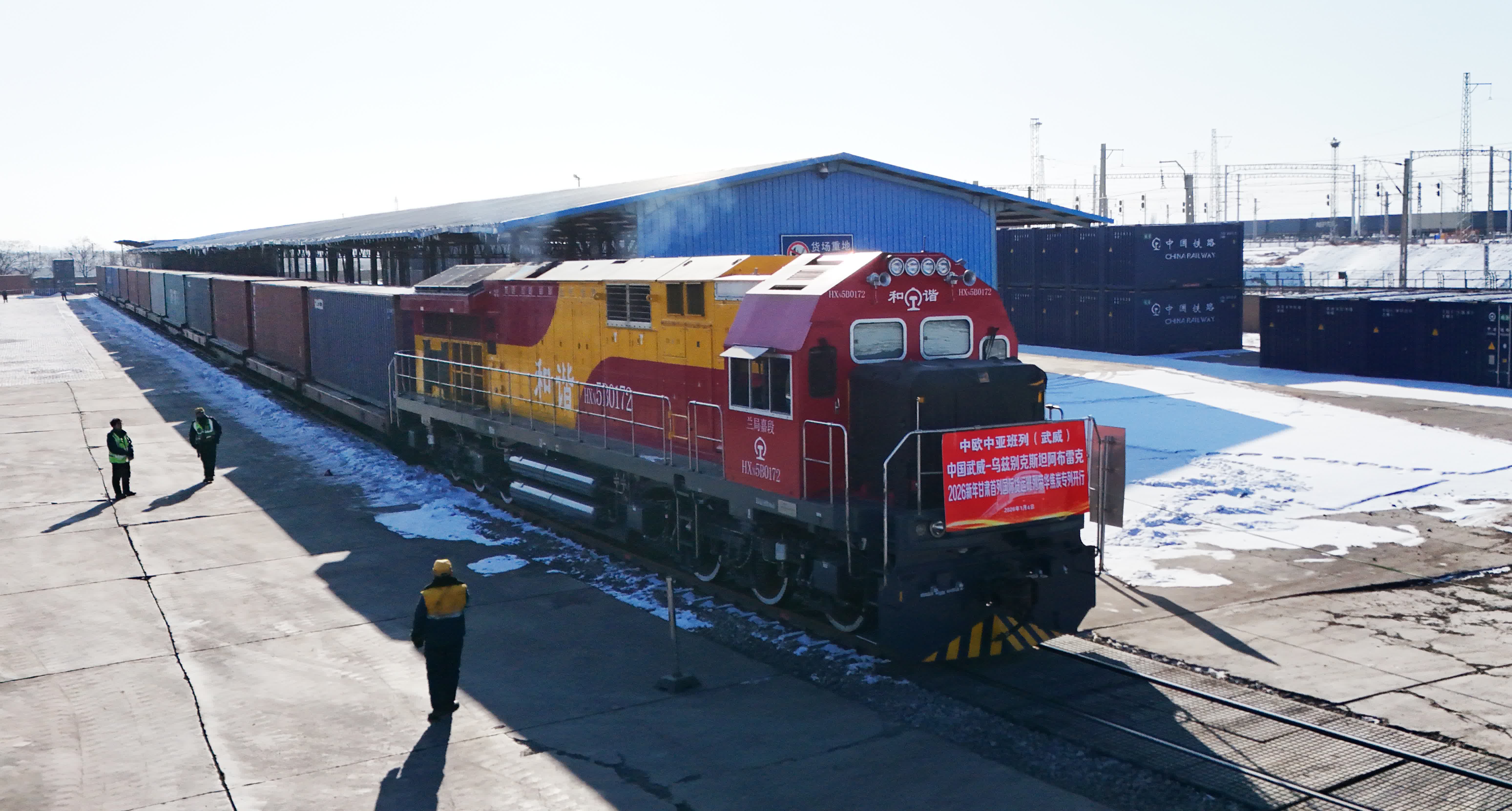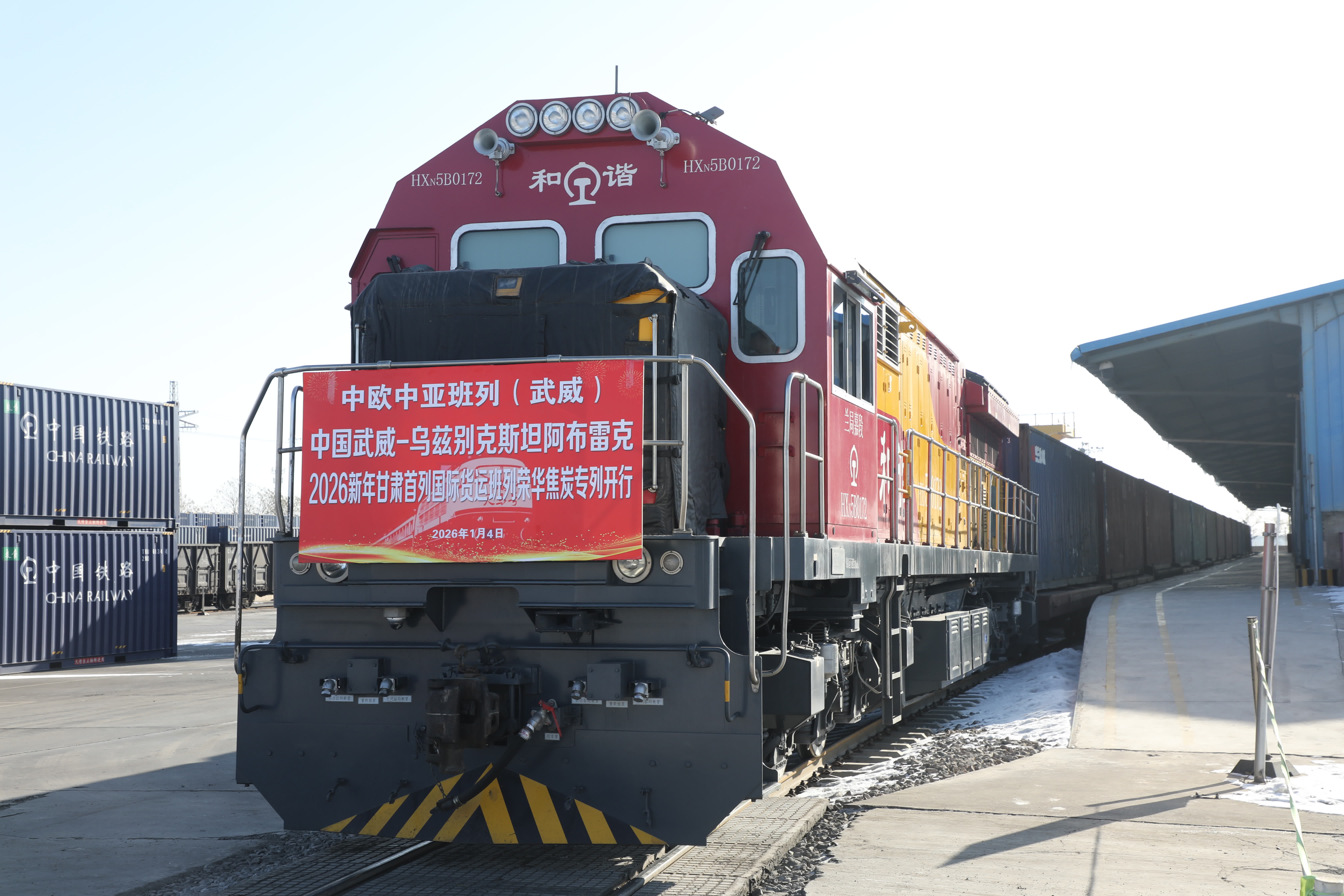 (香港文匯網記者 郭濤)1月4日上午,伴隨着響亮的汽笛聲,75111次國際貨運班列緩緩駛出甘肅武威南站,一路向西直奔烏茲別克斯坦阿布雷克站。這趟滿載着47個集裝箱、1300噸優質焦炭的「天馬號」班列,是2026年新年伊始甘肅發出的首列國際班列,標誌着甘肅在融入「一帶一路」建設、打造內陸開放高地上跑出了新年「加速度」。