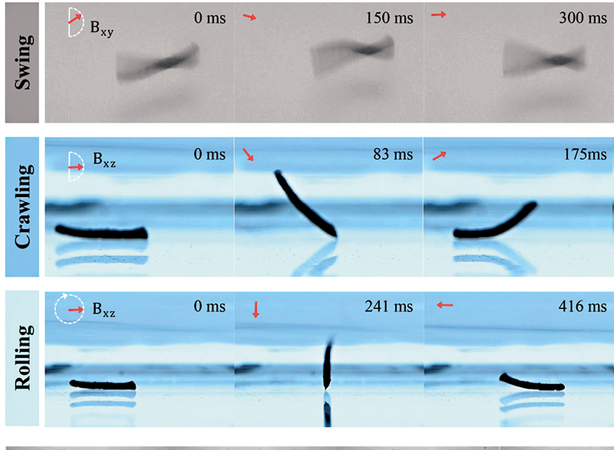全球首款「抗菌膜」磁控液態機械人,由動態交聯磁性水凝膠組成,具備獨特的黏彈性,有助清除人體內的菌膜。張立介紹,透過精準調控外部磁場,可啟動機械人不同行為模式,例如在彈性模式下,機械人可在病人體內進行旋轉、翻滾及跨越障礙等動作;在液態模式下,則可變成液態化的機械人,深入病人體內縫隙清除頑固菌膜。