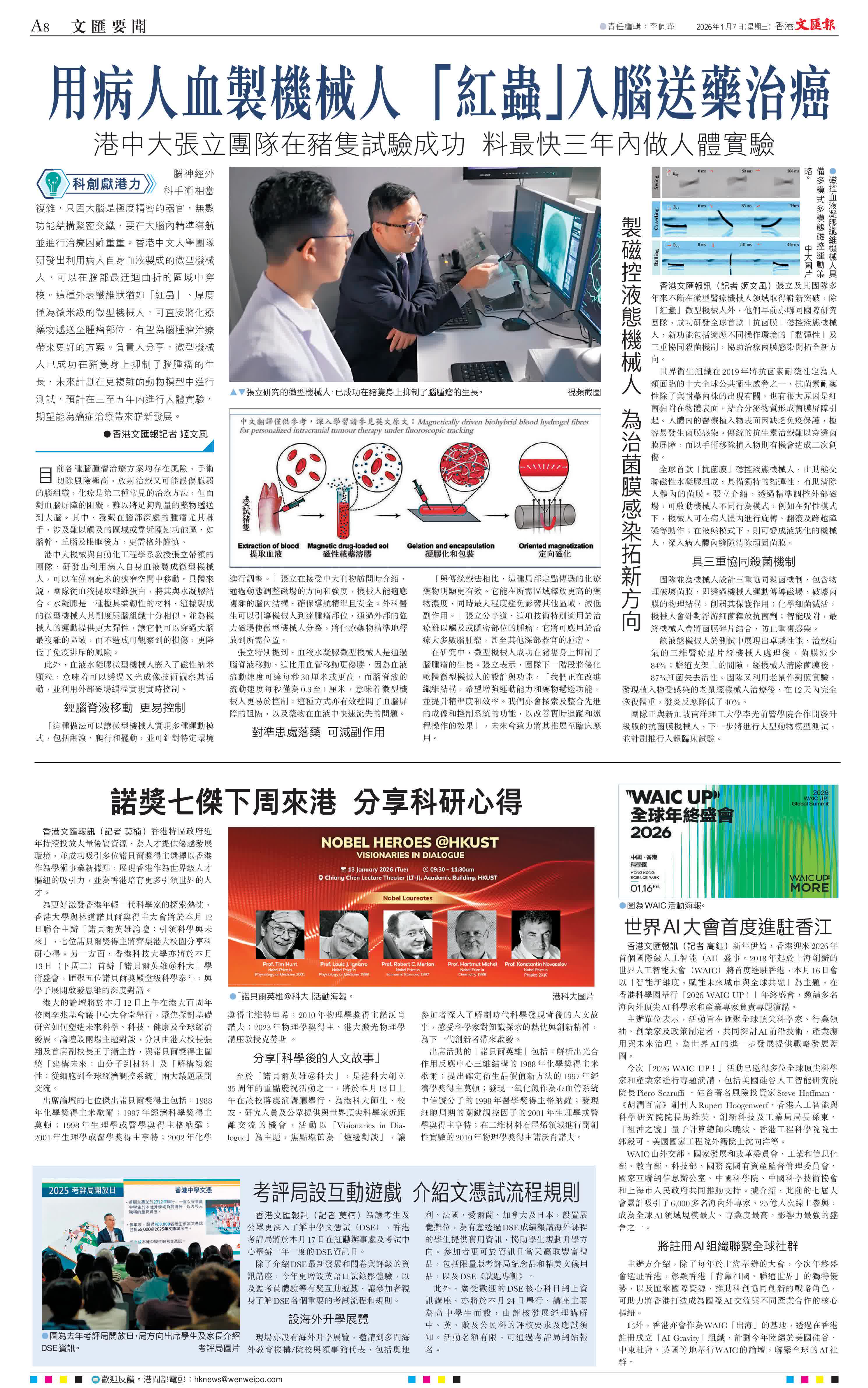 (記者 姬文風)張立及其團隊多年來不斷在微型醫療機械人領域取得嶄新突破,除「紅蟲」微型機械人外,他們早前亦聯同國際研究團隊,成功研發全球首款「抗菌膜」磁控液態機械人,新功能包括適應不同操作環境的「黏彈性」及三重協同殺菌機制,協助治療菌膜感染開拓全新方向。