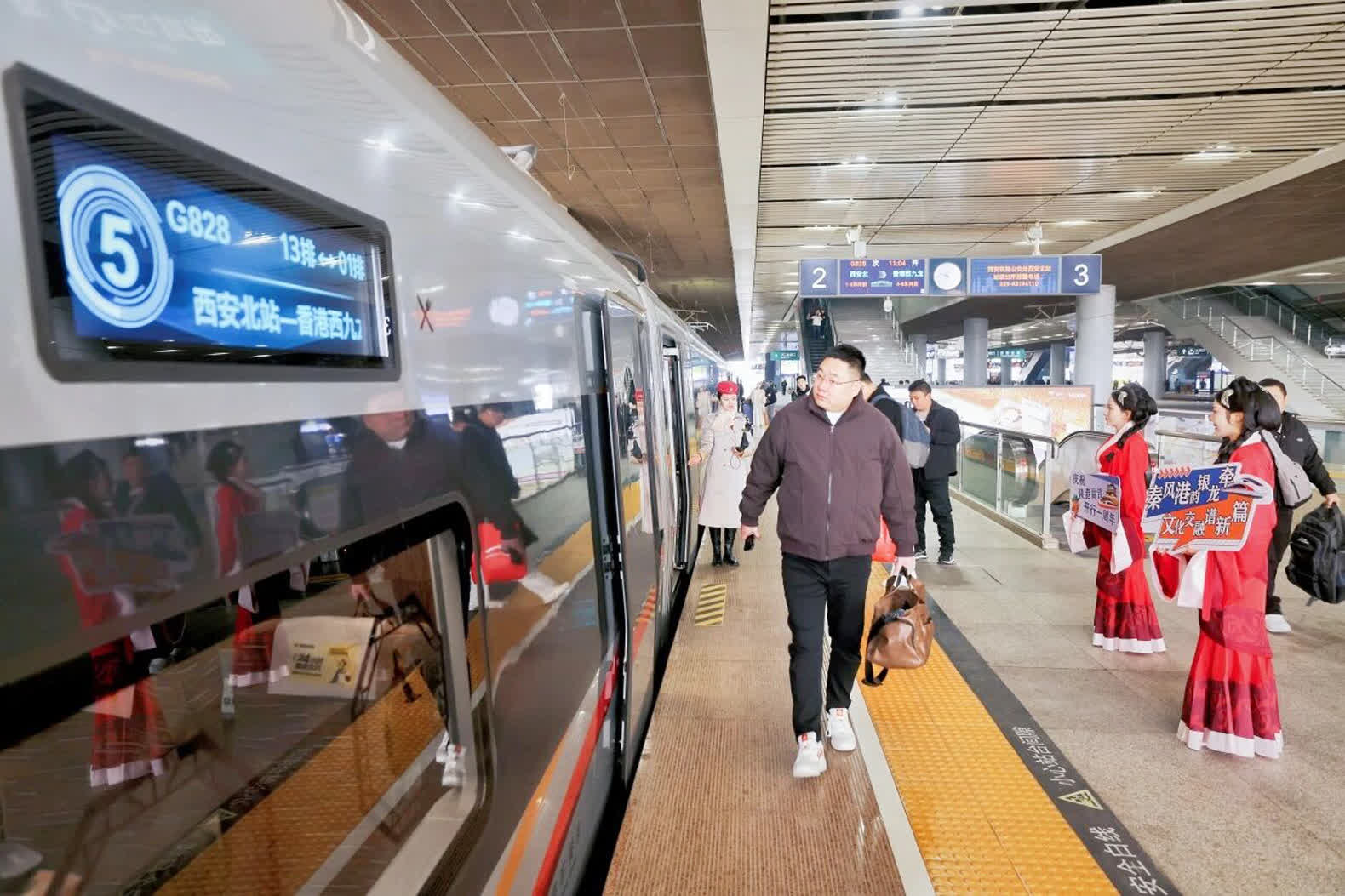 作為陝西省省會,西安是中華民族和華夏文明重要發祥地之一,也是國家明確建設的國際化大都市和國家中心城市。2025年1月5日,西安至香港的G828次高鐵列車首次啟程,讓古絲綢之路起點與東方之珠實現高鐵互聯。每日雙向對開「一鍵直達」,不僅進一步拉近了陝西與香港兩地的時空距離,更有力促進了兩地間更多的「雙向奔赴」,為促進西北地區與香港在經濟、文化、旅遊等多領域的交流合作注入全新動能。