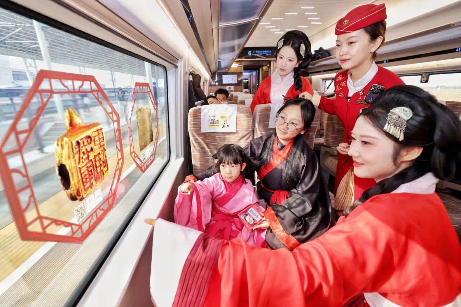 「我們把整個文化雅集『搬』上車廂,用最鮮活的方式迎接每一位旅客。」G828次高鐵列車長楊睿表示,一年來,鐵路部門深耕「文化+服務」模式,優化跨境服務流程、提升多語種服務能力,讓陝西至香港高鐵「流動博物館」不僅有文化厚度,更有服務溫度。旅客在趣味活動中,讓厚重的歷史變得可觸可感。