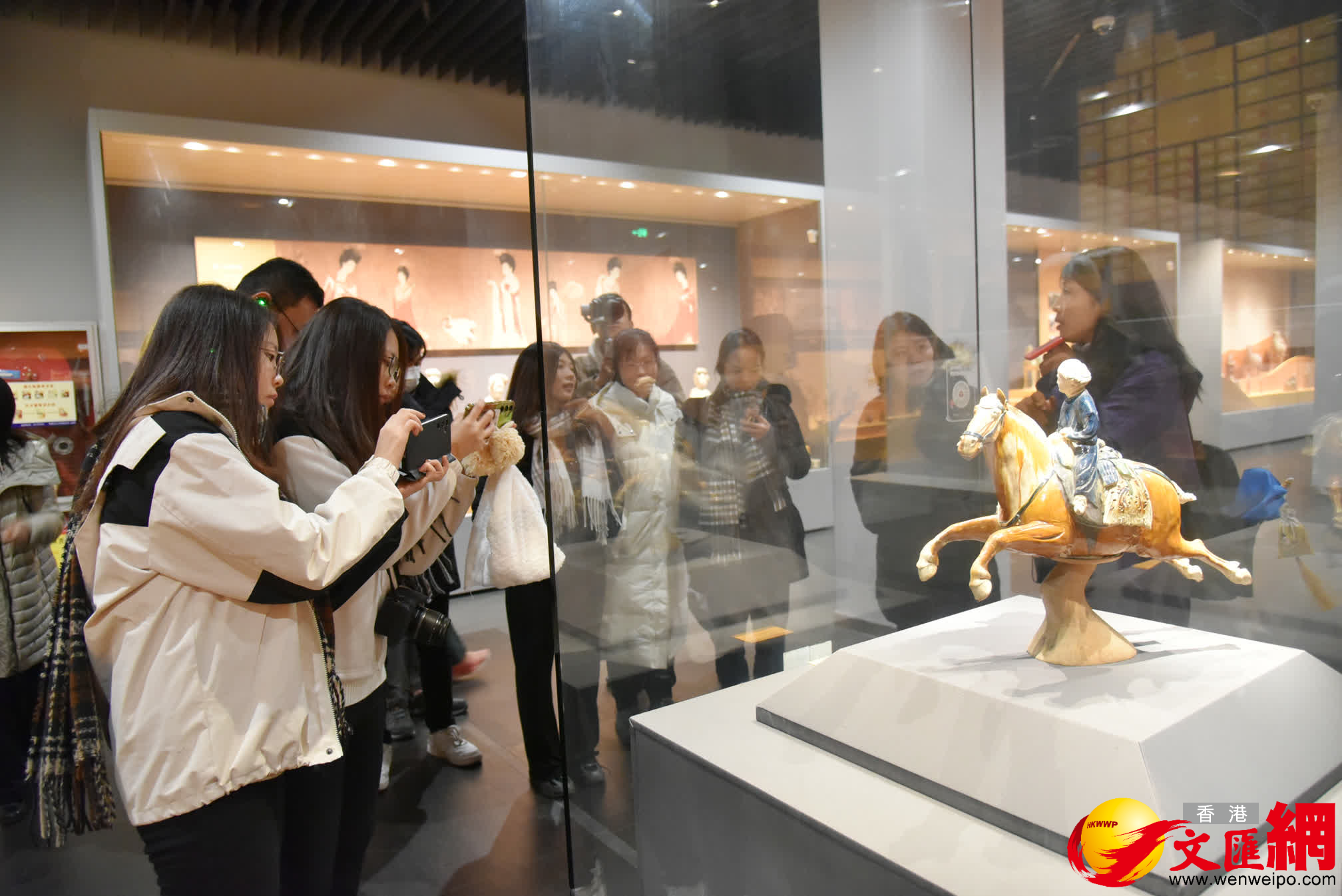 當日慶祝陝西至香港高鐵開行一周年「高鐵流動博物館」主題活動上,工作人員不僅在G828次列車13號主題車廂車窗上張貼了漢陽陵博物院文物圖片,並設置視頻、音頻兩種二維碼,旅客掃碼即可解鎖文物背後的歷史故事。同時列車吧台及右側小窗處還擺放了漢陽陵博物院「鎮館之寶」塑衣式彩繪拱手跽坐女俑「姍姍」、「千秋萬歲」瓦當等文物複製品與文創產品。漢陽陵博物院工作人員則以漢代陶俑服飾、動作為切入點,為旅客聲情並茂講解了漢代歲首文化,生動還原兩千多年前漢代歲首的多元場景。一些旅客亦興致勃勃換上漢服,以角色扮演的形式沉浸式參與了「漢代人的一天」體驗活動,在互動中體會漢代歲首家國同慶的文化內涵。