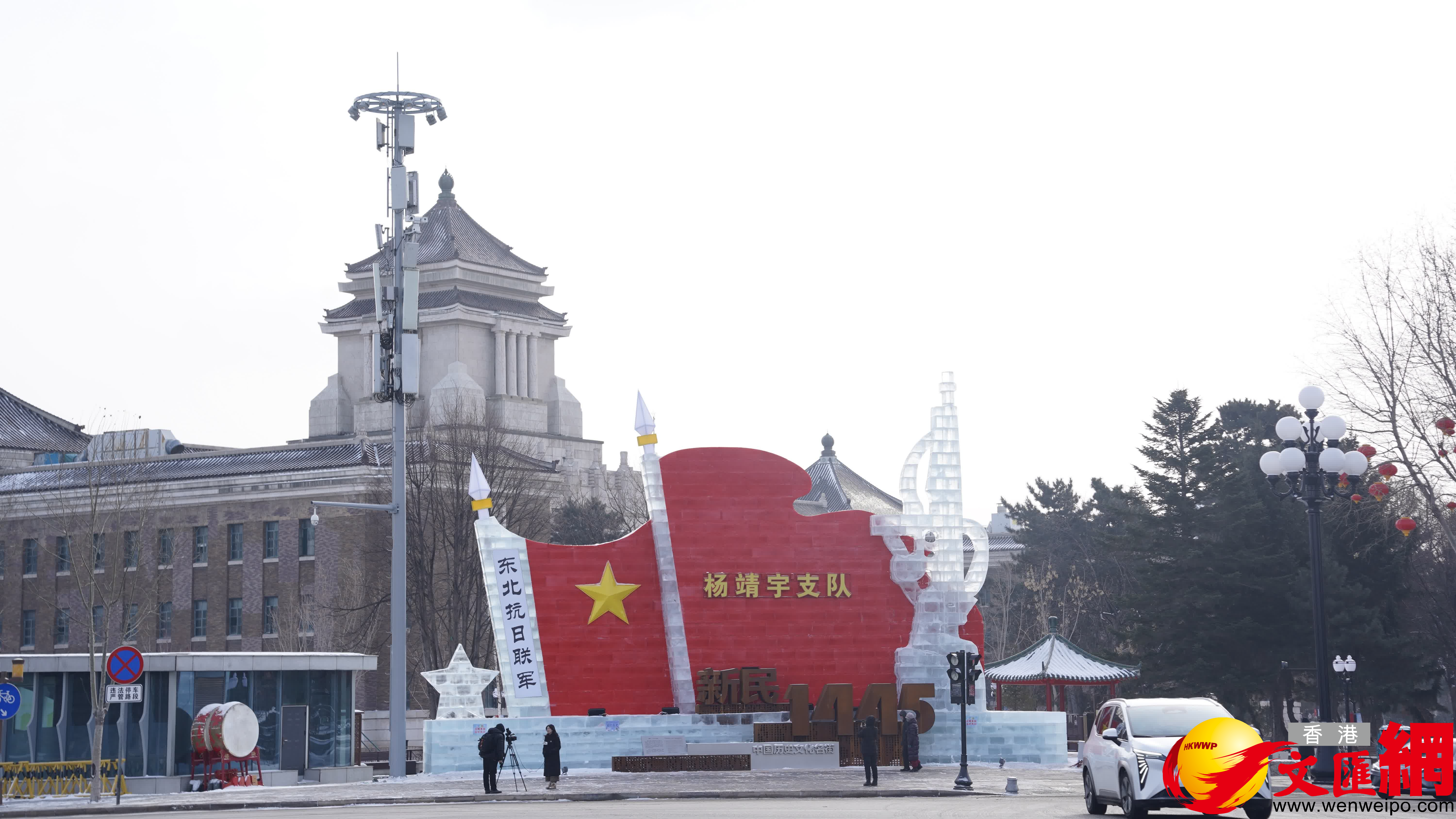 在長春文化廣場上,高達20米的「盛世中華」冰雕矗立中央,以天壇為形、以冰為材,將傳統建築意象轉化為冬日公共藝術,成為新民大街街區最具識別度的精神地標。馬路對面,「東北抗聯精神組雕」以冷冽冰體承載熾熱記憶,與「新民1445」共同構成一組凝固的歷史坐標,在城市日常空間中完成對民族記憶的當代表達。