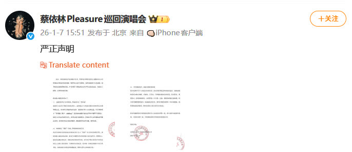 文中稱,對於網絡用戶「斯利亞(賬戶:celialiang)」及其他相關賬號在此次事件中散布不實信息、進行人身攻擊的惡劣行為,我司已進行證據固定,並通知平台立即刪除全部侵權內容。目前我司已啟動法律程序,堅決追究其法律責任,絕不姑息。我們誠摯呼籲廣大網友與社會各界,請保持理性思考與獨立判斷,不輕信、不盲從、不傳播未經證實的消息。