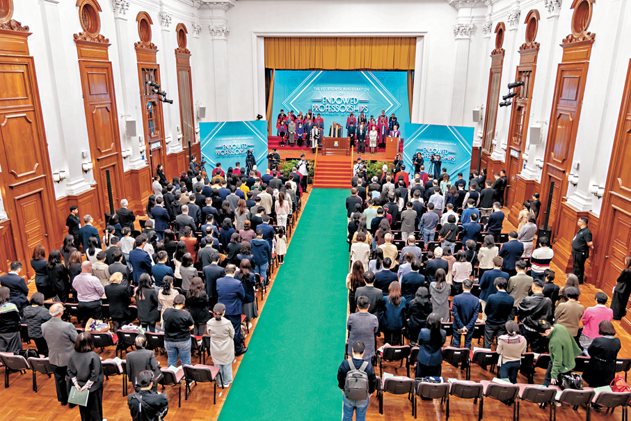香港文匯報訊(記者 高鈺)香港大學近日舉辦第十四屆「明德教授席」就職典禮,由港大副校監李國寶主禮,校長張翔等一眾管理層、港大基金主席徐立之、學院院長及約200名嘉賓出席活動。今年新成立6項明德教授席及4項傑出青年教授席;另有12項明德教授席獲繼任。