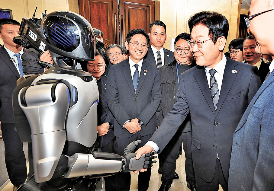 香港文匯報訊(記者 倪夢璟 上海報道)「這可讓我受寵若驚呢!」當韓國總統李在明與中國機器人「遠征A2」握手的一刻,中國科技人的幽默風趣引發現場歡笑。7日,韓國總統李在明在上海出席中韓創新創業論壇。在展示區域,李在明參觀了中國企業展示的各類高科技產品,在對話環節,有中國企業家直言希望未來中韓共推AI合作發展。而據環球網報道,李在明當日在社交平台上發帖稱,在中國最契合「創新」和「增長」這兩個詞的城市——上海,再次確認了韓中兩國光明而充滿希望的未來。