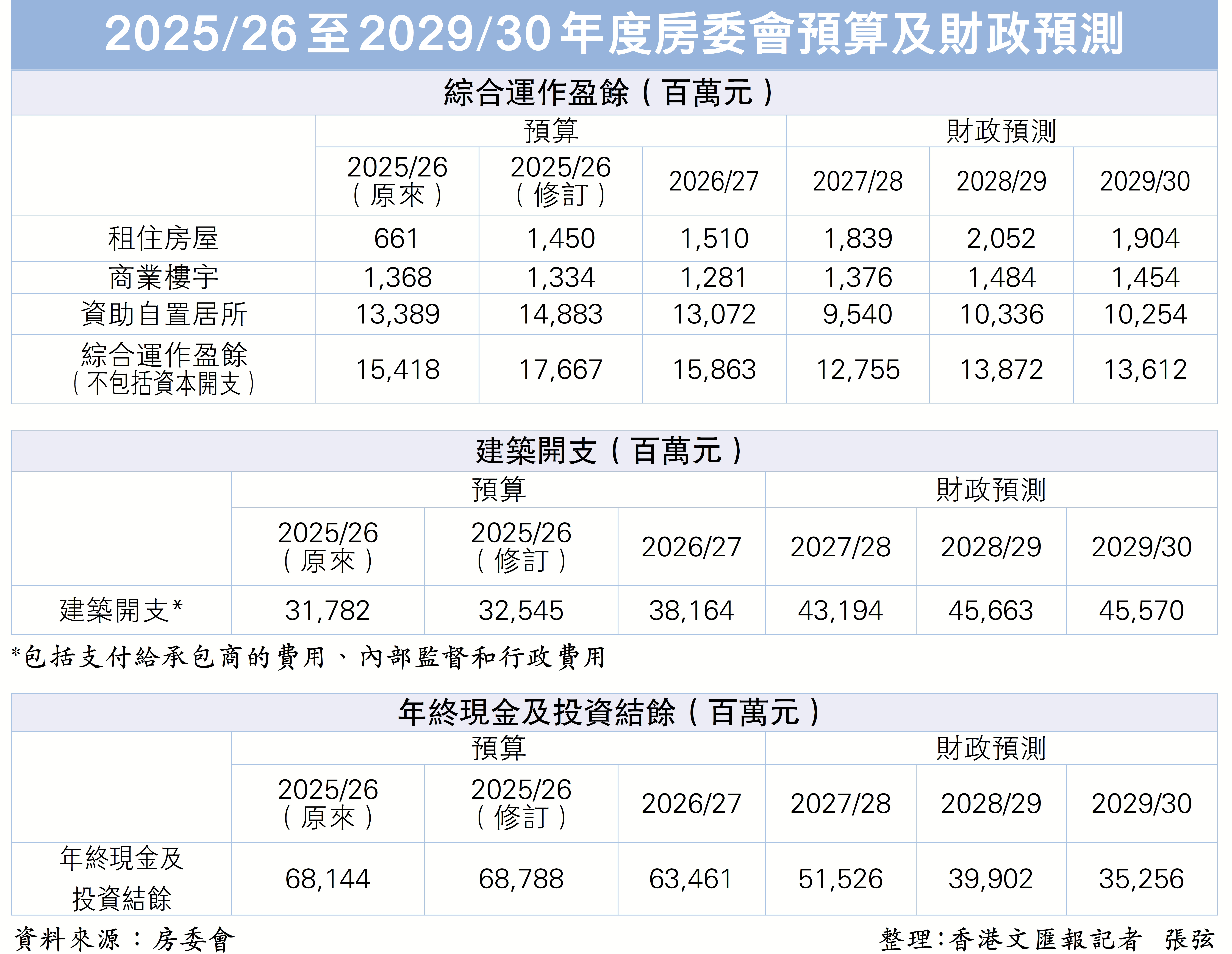 房委會財務小組委員會主席麥萃才昨日表示,房委會在制定時有準則,現金結餘要計算6個月的建築開支及3個月的營運開支,相信這份預算至到2029/2030年度為止,應可滿足有關要求。