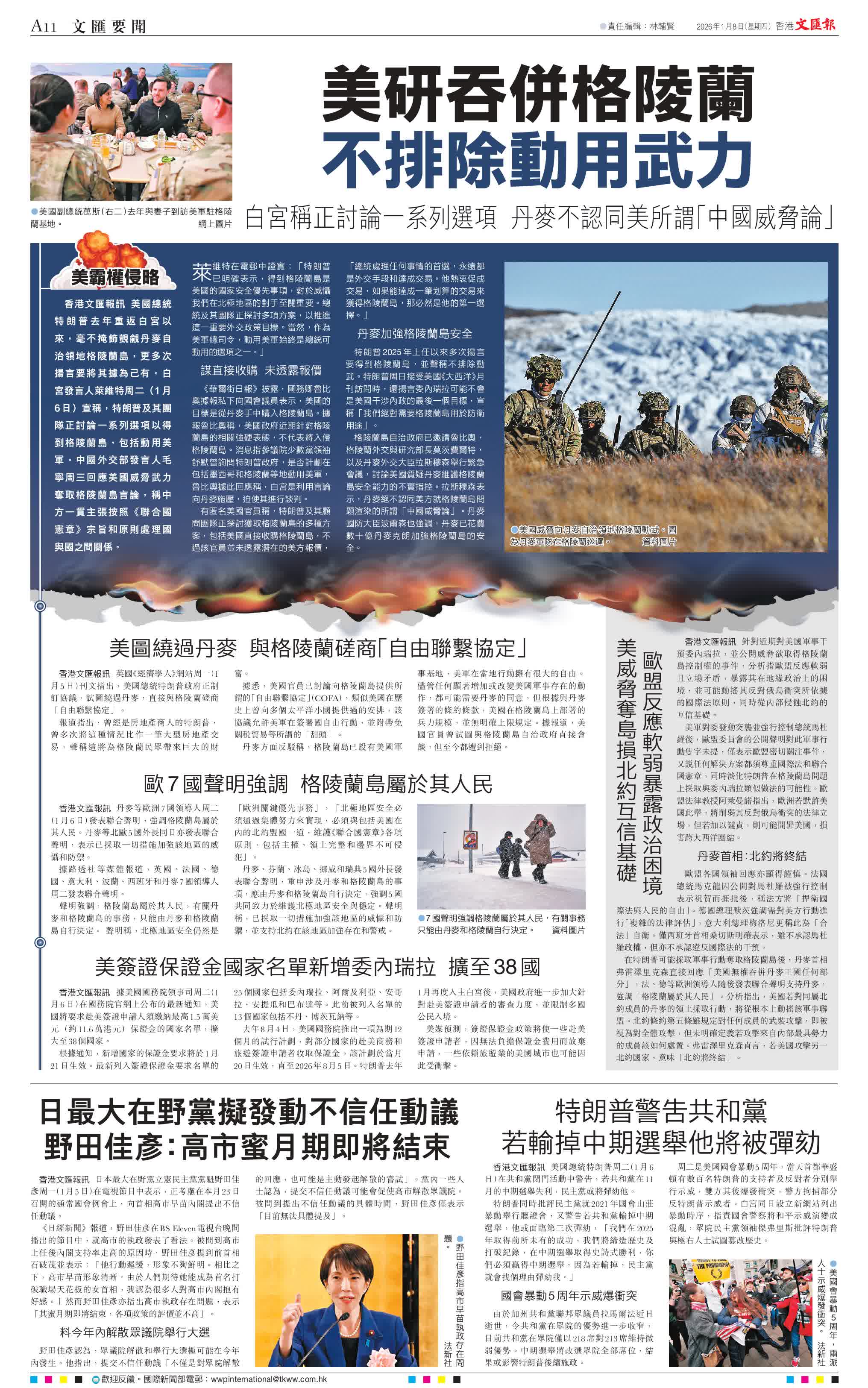 丹麥等歐洲7國領導人周二(1月6日)發表聯合聲明,強調格陵蘭島屬於其人民。丹麥等北歐5國外長同日亦發表聯合聲明,表示已採取一切措施加強該地區的威懾和防禦。