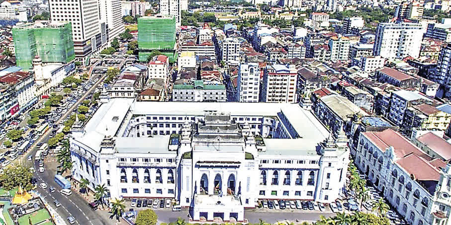 1936年建成的仰光市政廳,是仰光城市發展委員會的辦公地點。市政廳位於仰光市中心,附近有許多如蘇雷金塔、摩訶班都拉公園、緬甸最高法院以及郵政總局等仰光重要地標。仰光市政廳的建築風格,融合了殖民風格的樓體和緬甸風格的屋頂,屋頂因採用傳統階層式構造,而被認定為符合緬甸建築的典範。