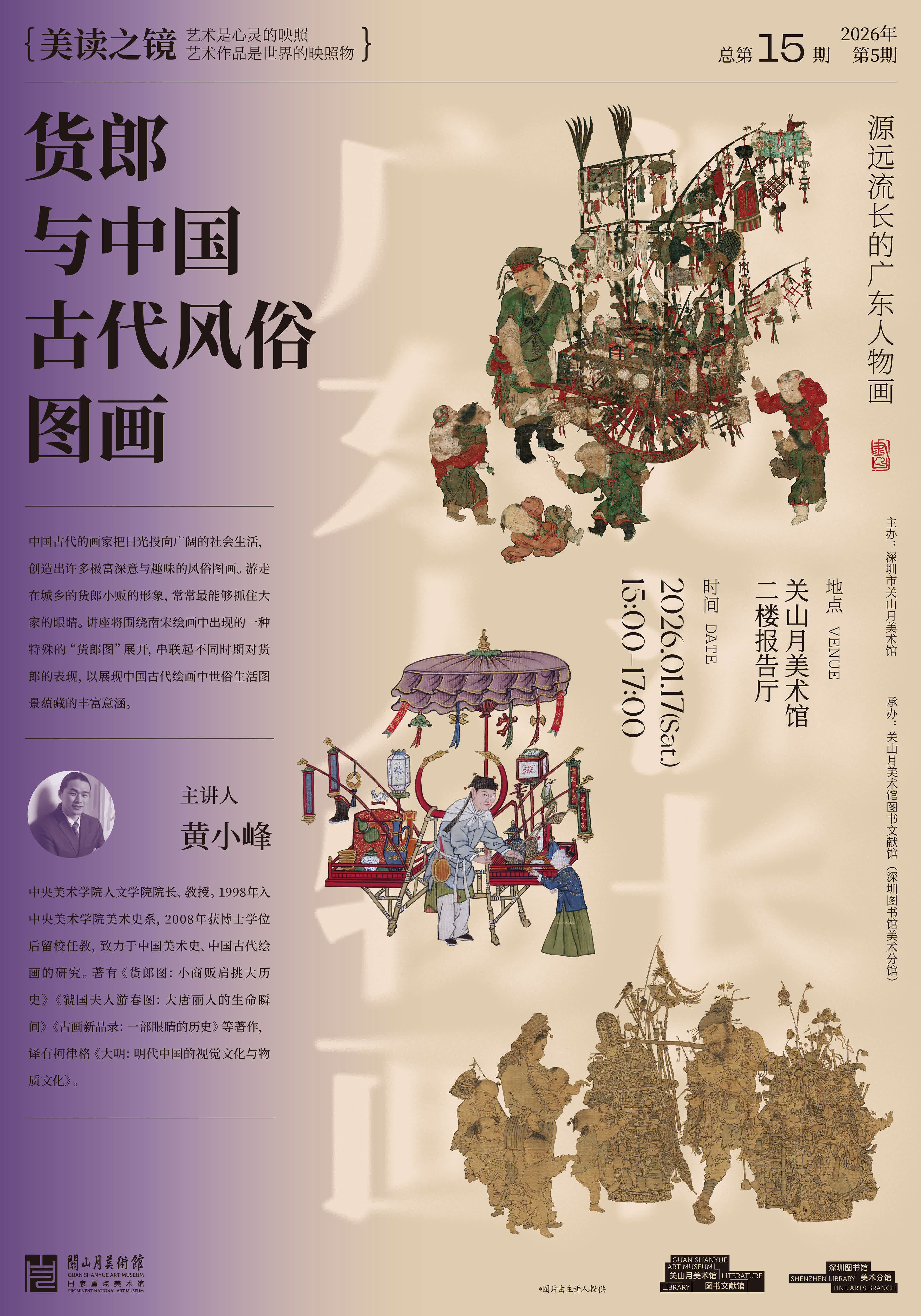 (香港文匯網記者李望賢 深圳報道)中國古代的畫家把目光投向廣闊的社會生活,創造出許多極富深意與趣味的風俗圖畫。遊走在城鄉的貨郎小販的形象,常常最能夠抓住大家的眼睛。1月17日,深圳關山月美術館「美讀之鏡」系列講座將以「貨郎與中國風俗圖畫」為題,由中央美術學院人文學院院長、美術史學者黃小峰為粵港澳大灣區觀眾打開欣賞人物畫的另一扇門,通過遊走在古代城鄉的貨郎小販這一種特殊的人物形象,展現中國古代繪畫中世俗生活圖景蘊藏的豐富意涵。